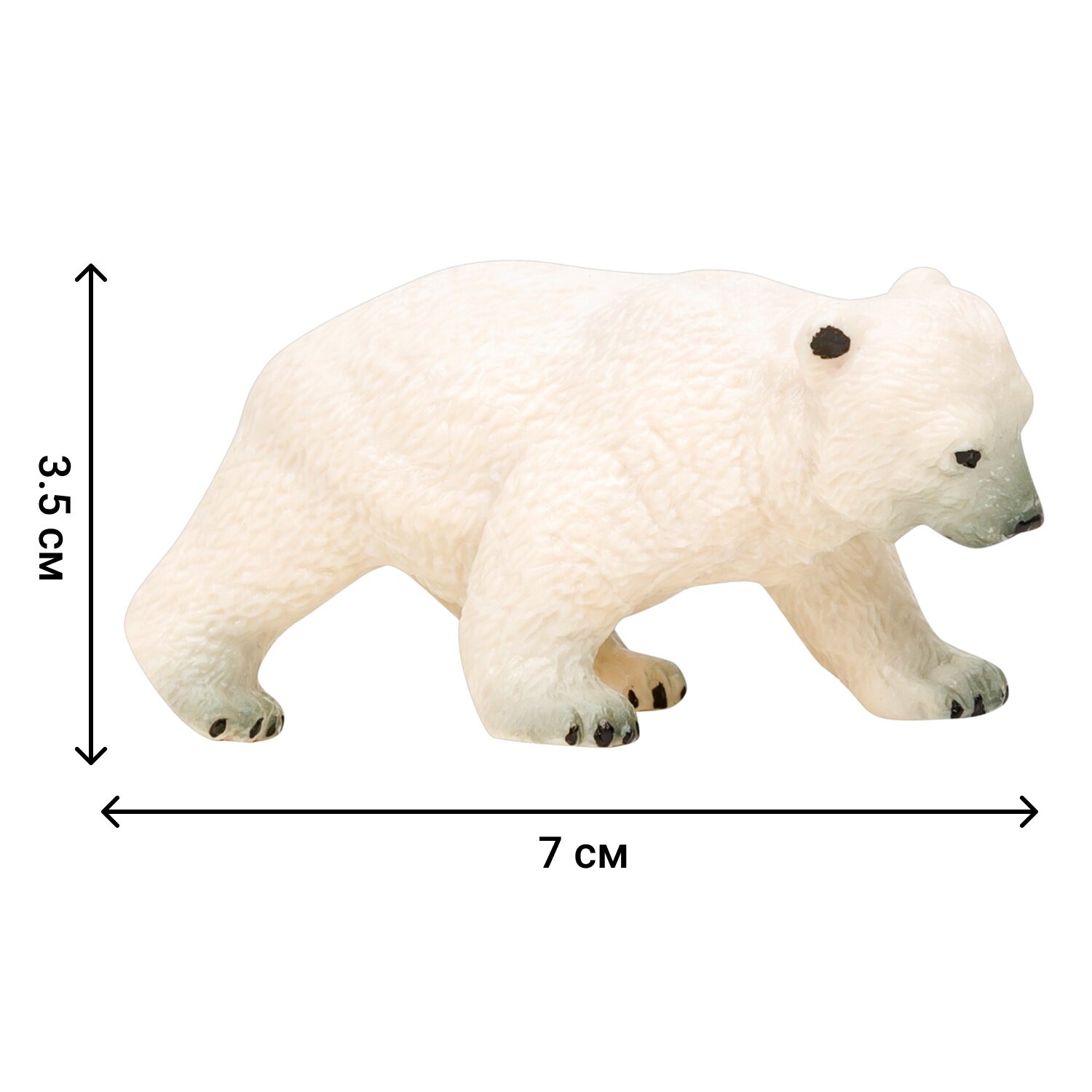 • В комплект входят: белая медведица (10,5х4,5х7 см) и 2 медвежонка (7х3,5х3,5 см; 4х2,5х6 см).
