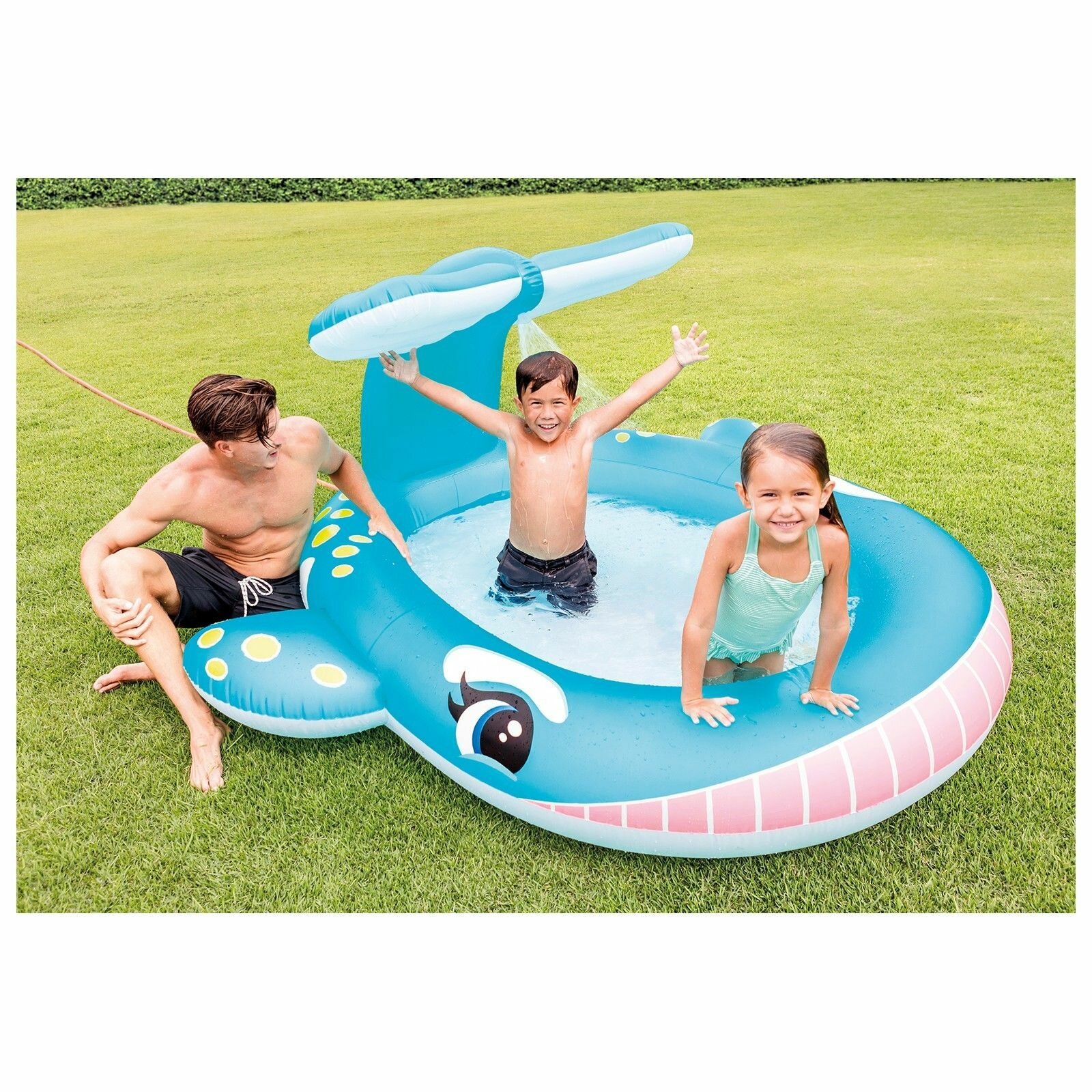 Забавная модель для ребенка от 2 лет - детский надувной бассейн "Кит" с распылителем. Объем - небольшой, а бортики - низкие, поэтому малыш будет всегда под присмотром. Вода быстро прогреется от лучей солнца. Модель овальной формы - яркая и красочная. Добродушный улыбающийся кит не оставит ребенка равнодушным. Его хвост – фонтанчик, который для создания комфорта и прохлады в жару достаточно присоединить к садовому шлангу. Бассейн изготовлен из износостойкого, надежного, мягкого, прочного, безопасного и гипоа
