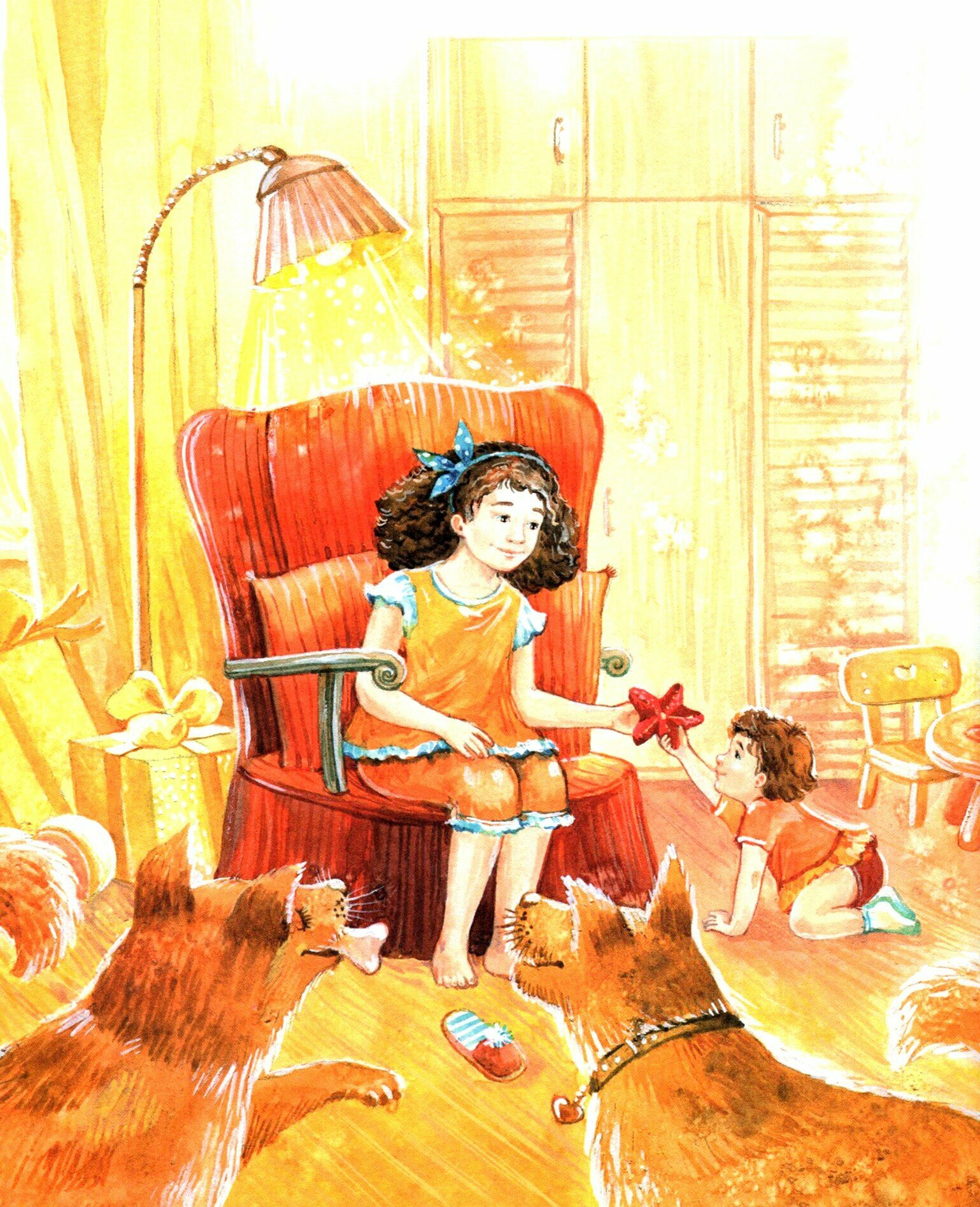 Чудесная теплая книга! Приятно держать в руках. Твердая глянцевая обложка, матовые страницы, большие иллюстрации на каждой странице, крупные буквы. Можно читать самостоятельно