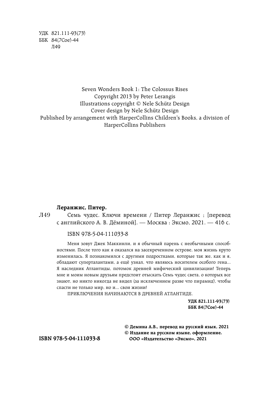 Семь чудес. Ключи времени (выпуск 1) (Леранжис Питер); ООО "Издательство "Эксмо", 2021