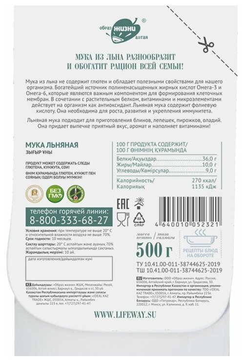 Сервис сравнения цен СкидкаГИД предлагает сравнить цены на товар «Мука Образ жизни Алтая льняная 500г»