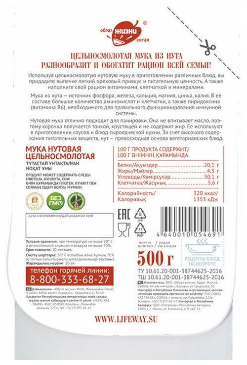 Сервис сравнения цен СкидкаГИД предлагает сравнить цены на товар «Мука Образ жизни Алтая нутовая цельносмолотая 500г»