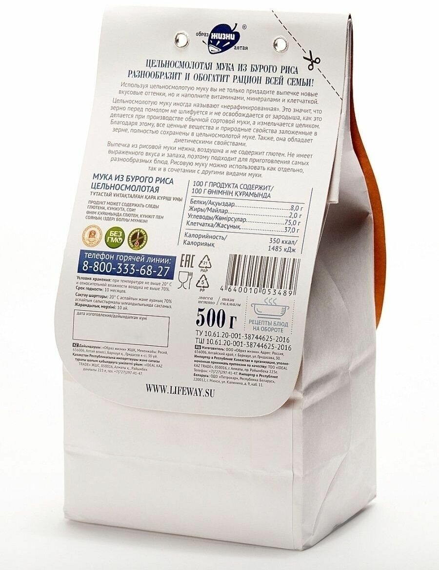 Мука Образ жизни Алтая из бурого риса цельносмолотая 500г