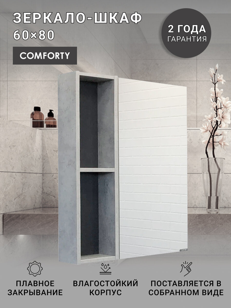 родина бренда Comforty, вся продукция производится со строгим соблюдением всех стандартов, благодаря чему можно быть абсолютно уверенным в надежности и высоком качестве. Зеркало-шкаф Comforty Франкфурт 60 создаст уют и комфорт в любом дизайнерском решении, и ванная комната обретет неповторимый элемент интерьера.