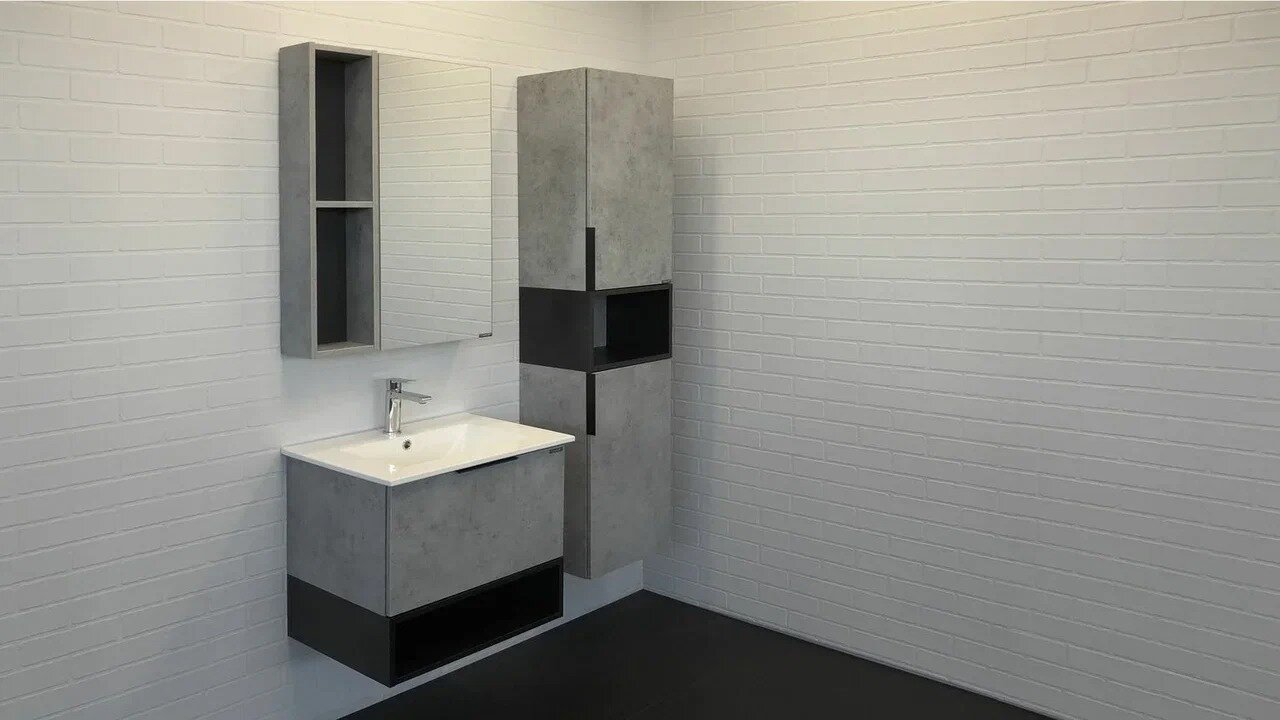 Зеркальный шкаф Comforty Франкфурт 60 00-00004331 Бетон светлый Черное матовое