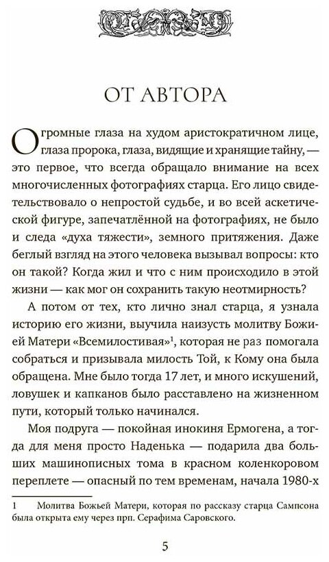 подчеркнуто авторская, отчасти беллетристическая, рассчитана на широкий круг читателей, интересующихся историей духовной жизни в Советском Союзе, а также имеющих интерес к судьбе и духовному наследию старца Сампсона (Сиверса).