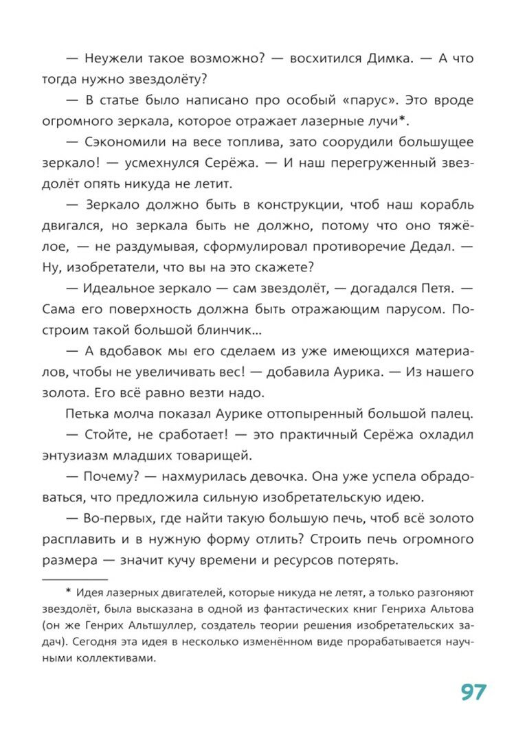 Интересная и хорошо написанная книга! В приключенческом формате авторы делятся с читателями различными приемами мышления и изобретений. Причем авторы об этом знают не понаслышке - Борис Злотин и Алла Зусман профессиональные изобретатели и решатели творческих задач, Анна Кутузова уже много лет занимается с детьми и подростками вопросами развития мышления.