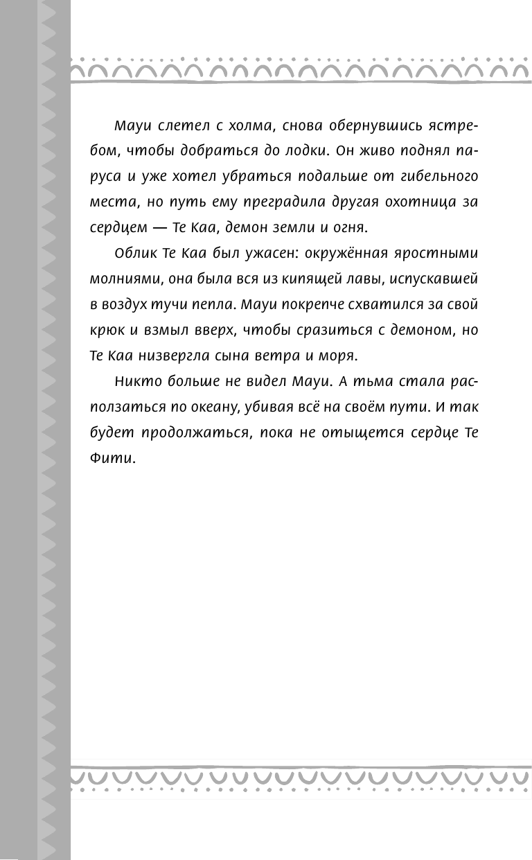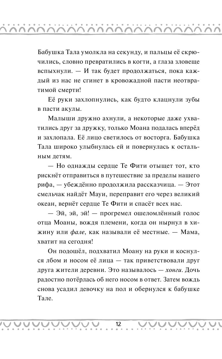 Интересная книга, более подробное повествование, приятное дополнение в виде легенд народа острова Мотунуи. Книга помогает заново пережить приключения Моаны и Мауи, при чтении перед глазами всплывают сцены из мультфильма. Вообще считаю историю Моаны глотком свежего воздуха на фоне остальных мультфильмов Диснея.