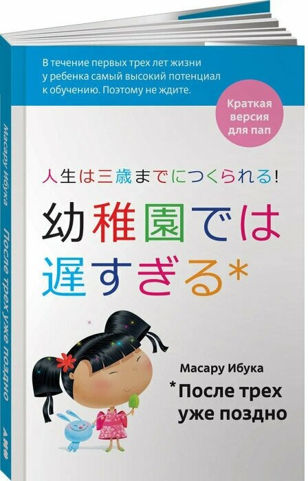 Замечательная книга для начинающих отцов! Подарила мужу- все довольны и я и сын и папа! После трех уже поздно Короткая версия для пап доступно, интересно и с картинками объясняет многие моменты воспитания и обучения папам, незаметно втягивает их в процесс. К тому же Масара Ибука делает акцент на тех моментах, которые у пап получаются лучше. рекмендую и мамам и папам!