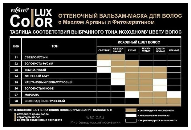Бальзам-маска для волос оттеночный тон 21 Светло-русый Color Lux Белита 100 мл Белита СП ООО (578415)