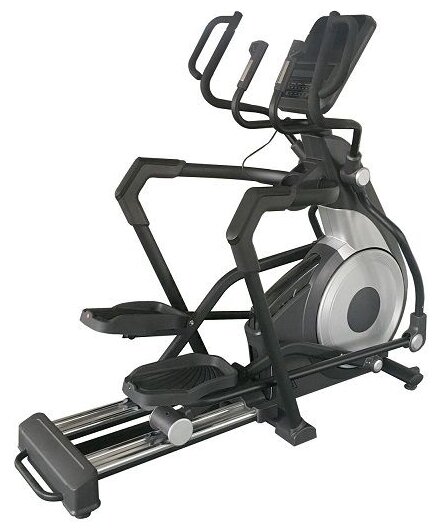 — высокопроизводительный и качественный эллиптический тренажёр премиум-сегмента. 12-килограммовый маховик расположен спереди, что удобно для домашних тренировок. Регулировка тренажёраМодель оснащена электромагнитной системой регулировки с электрическим переключением нагрузки. Есть 32 уровня сложности, которые можно менять даже во время занятия с панели управления. Изменение уровня нагрузки мягкое, что безопасно и комфортно для пользователя. Тренажёр имеет дополнительные поручни, благодаря чему можно менять угол наклона для повышения эффективности тренировки. Регулировать наклон можно непосредственно с консоли управления. Комфортные тренировкиИмеется 12 предустановленных программ для тренировок. Уникальный цветной дисплей — такой практически не встретить среди других аналогов. На нём отображаются: время занятия, скорость, уровень сложности, расстояние, затраченные калории, пульс, который считывается с датчиков на поручнях. Имеются MP3 и USB входы на передней консоли, а также подставки под планшет и бутылку. Хранение и транспортировкаЗа счёт наличия транспортировочных роликов и специальной ручки в основании тренажёра его удобно перемещать по квартире и дому. Например, если нужно убрать его на хранение или вы хотите поменять место тренировки.