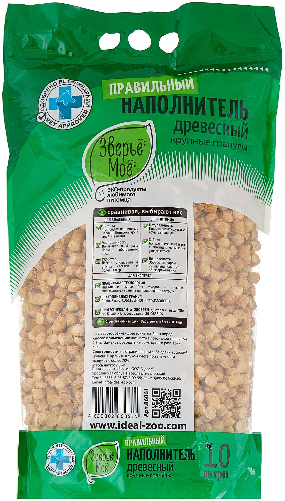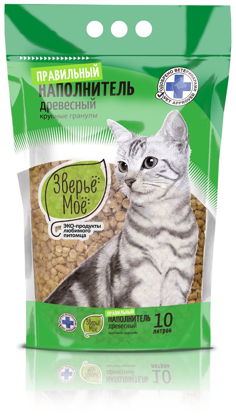 Наполнитель для кошачьего туалета Зверье Мое древесный крупные гранулы 10л