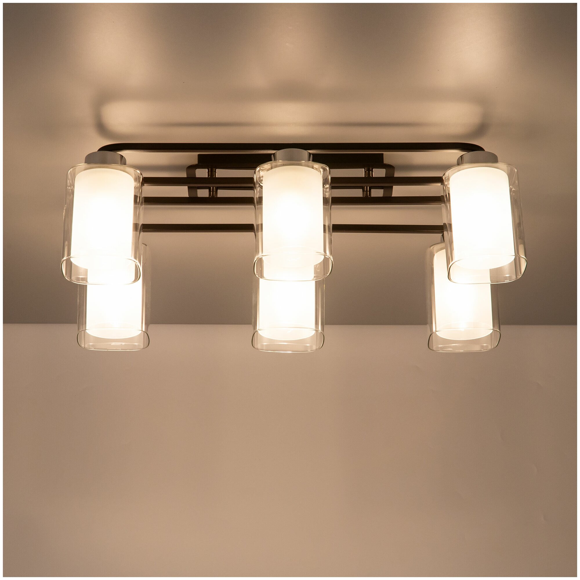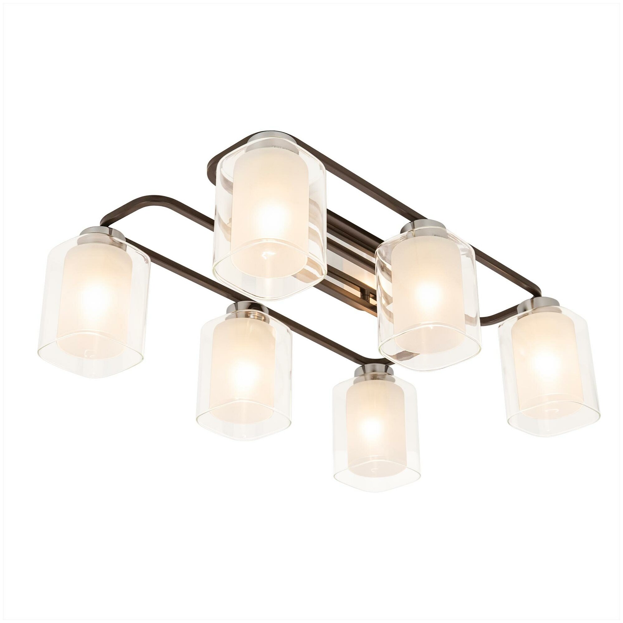 Люстра Румба — практичное и элегантное решение для освещения гостиной, спальни, кабинета или просторного холла. Каркас светильника выполнен из прочного металла с декоративным покрытием, состоит из двух прямоугольных рам, на которых симметрично расположены двойные стеклянные плафоны квадратного сечения. Их внутренняя часть матовая, а внешняя — прозрачная, что придает модели особую оригинальность. Люстра размещается близко к потолку, благодаря чему не утяжеляет пространство и подходит для помещений любых габаритов.