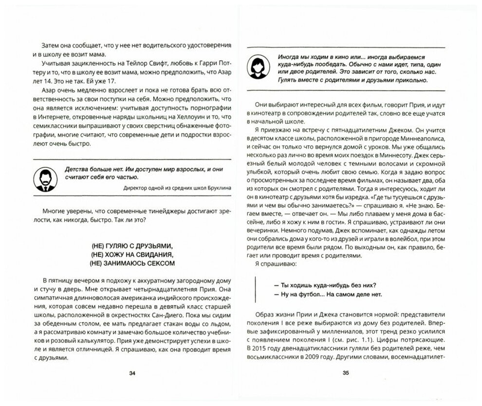 В этой книги доктор Джин М. Твенге, профессор психологии университета Сан-Диего, вырисовывает уникальный портрет нового поколения, которое не хочет вырастать, живет среди тревог, с которыми не сталкивались предыдущие поколения, и безразлично относится к стандартным "взрослым искушениям" вроде секса и алкоголя. Вместе с тем новое поколение избегает и "взрослых обязанностей", не спеша получать водительские права, съезжать от родителей и обретать финансовую независимость. Поколение I уже вступило во взрослую жизнь, и потому именно сейчас нужно всестороннее объяснение этого общемирового феномена. Потому что путь, которые изберет для себя поколение I, станет новым путем всего человечества.