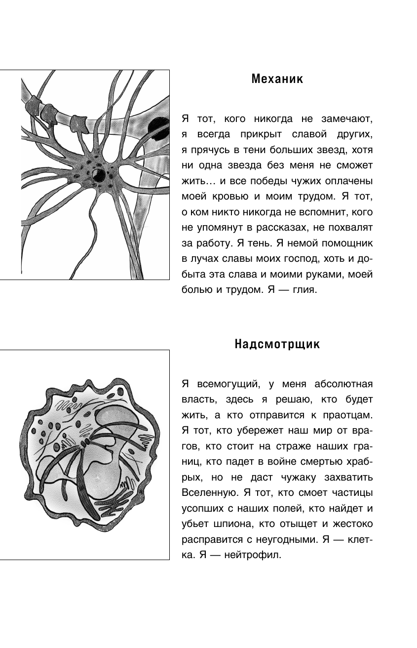 Автор наводит увеличительное стекло на микромир наших органов, сосудов, клеток — и он превращается в мир МАКРО, космос, неизведанную вселенную внутри человека. В ней каждую секунду живут, сражаются, делают ошибки, стоят на посту, умирают и снова рождаются наши помощники и защитники. В этой вселенной свои законы и иерархия, свои герои и свои нарушители. И высшая ценность — человеческая жизнь.