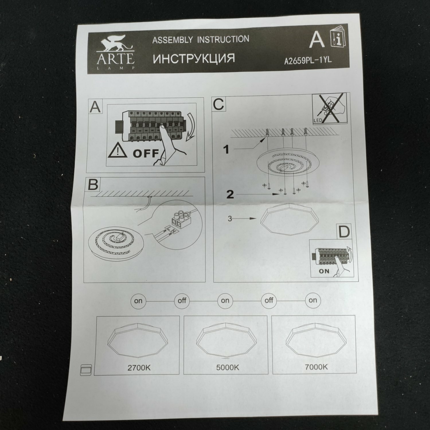 | Цвет плафона/арматуры | белый/желтый |