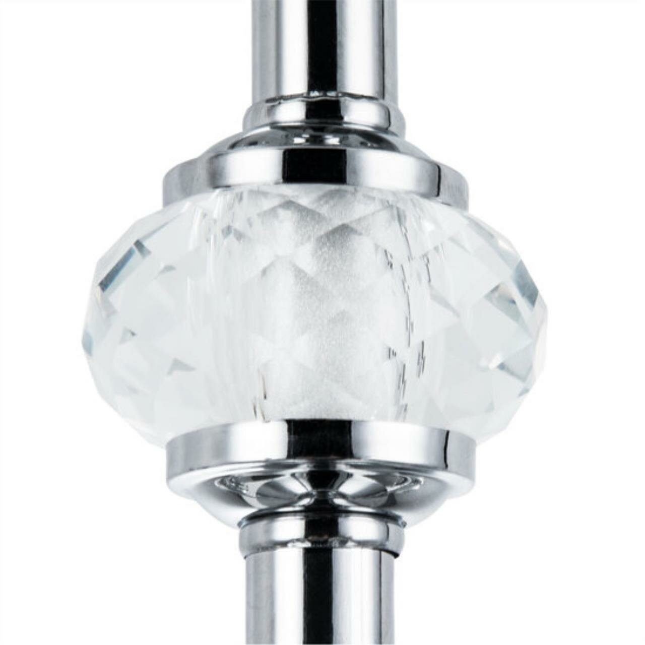 Люстра Sophie, выполненная в стиле модерн, украсит собой жилую комнату или просторный холл. Основание модели изготовлено из хромированного металла и декорировано хрустальными элементами. 5 изогнутых рожков увенчаны оригинальными цилиндрическими плафонами, образованными из длинных хрустальных «сосулек». Подвески покачиваются, переливаются и создают интересную игру света на своих гранях. Люстра подойдет для помещений с высокими и стандартными потолками.