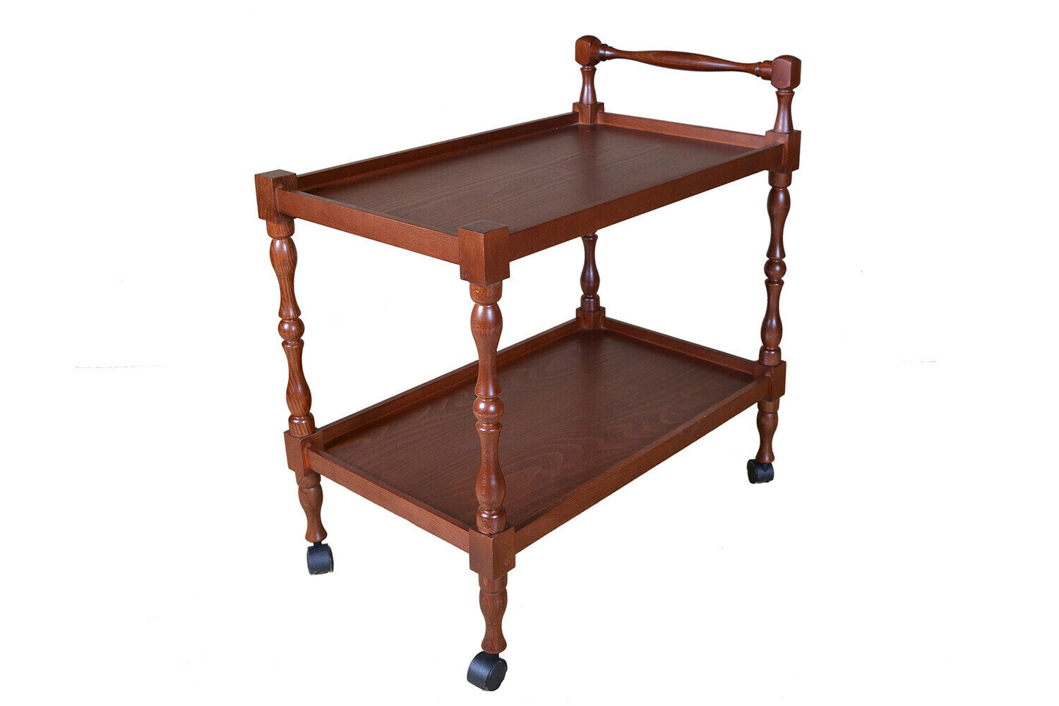 Сервировочный столик «Бридж» - демократичное по цене средство создания ощущения обстановки ресторана.Это скорее практичный, нежели стильный предмет. В этом столике все предусмотрено для того, чтобы пользоваться им было удобно и безопасно. Ограничители на столешнице не дадут предметам сервировки съехать с нее при движении.Тоже относится и к вместительной нижней полочке. Столик оснащен удобной ручкой для передвижения и колесами, которые имеют плавный, бесшумный, легкий ход. С этим столиком вы сможете за считанные минуты преобразить гостиную в столовую, просто подкатив его к дивану со всем необходимым для легкого перекуса у телевизора.