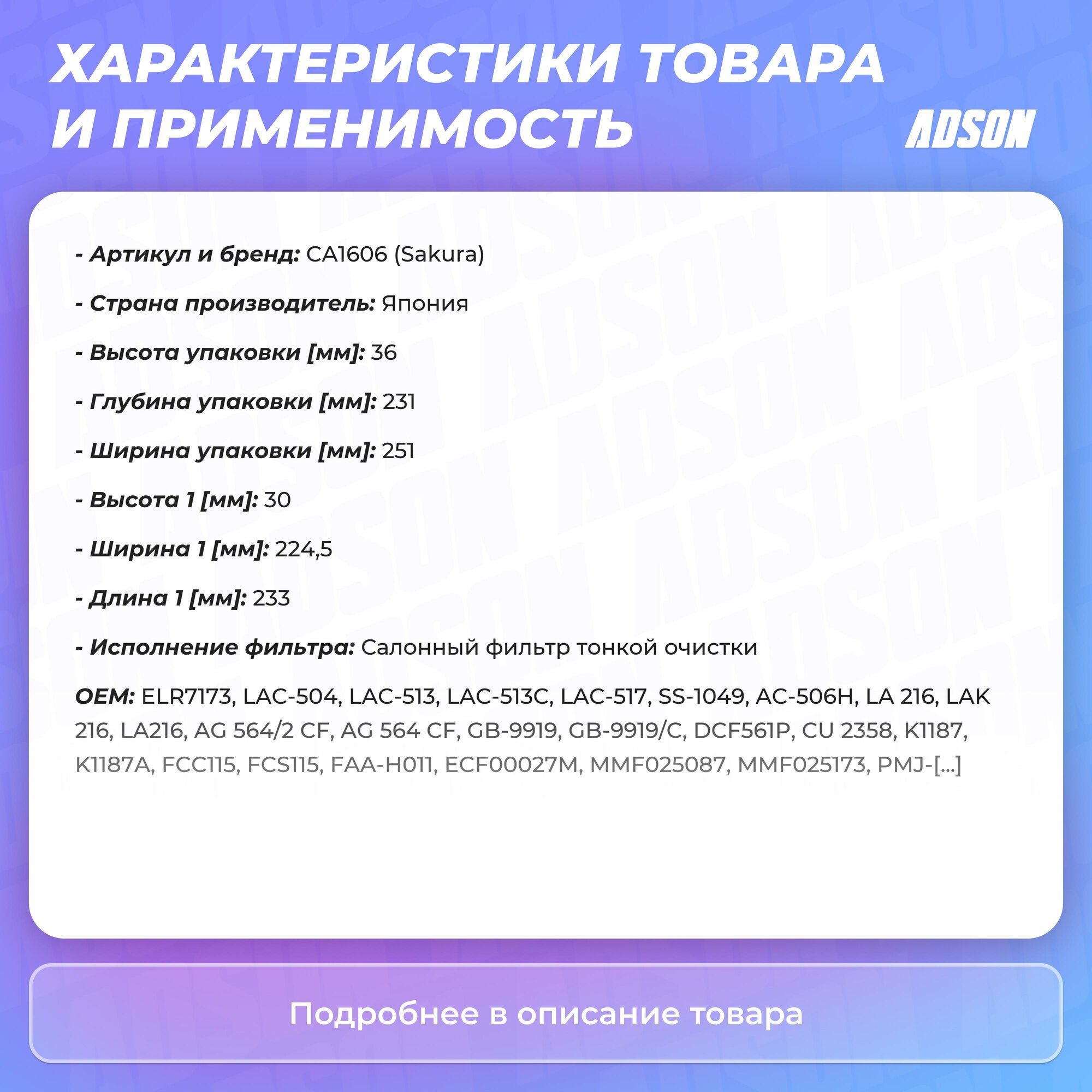 Сервис сравнения цен СкидкаГИД предлагает сравнить цены на товар «Фильтр салонный SAKURA CA1606»