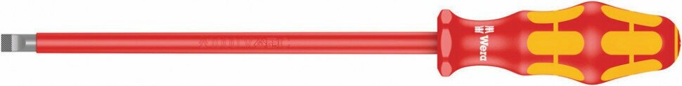 Отвёртка Wera VDE с многокомпонентной ручкой Kraftform Plus для работы в быстром и щадящем режиме: твердые зоны ручки для высокой скорости работы, в то время как мягкие зоны ручки обеспечивают передачу больших моментов силы. Поштучная проверка в водяной бане под напряжением 10000 В для безопасной работы на оборудовании с максимально допустимым напряжением 1000 В. Шестигранный край ручки для защиты от перекатывания отвёртки на рабочем месте.