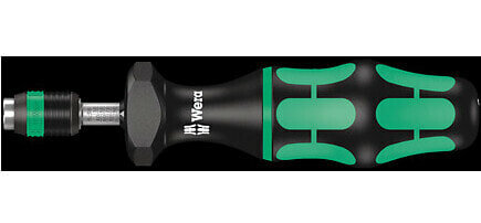 Wera torque screwdriver. Variable torque setting option with highest precision. Simple adjustment of the required torque value without any special tools. Easy-to-read scale value. Rapidaptor quick-release technology for rapid bit change. Unlimited torque to loosen seized screws. Multi-component Kraftform handle with hard and soft zones for high working speeds, whilst being easy on the hand. Suitable for bits with 1/4" hexagon head drive as per DIN ISO 1173-C 6.3 and E 6.3 (ISO 1173).