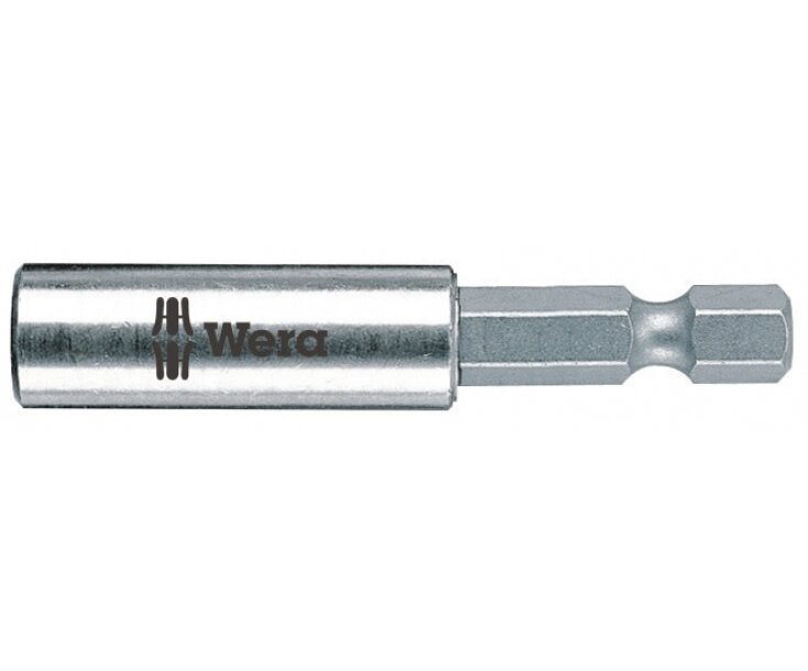 Универсальный держатель для битов с шестигранным хвостовиком 1/4" по стандарту DIN ISO 1173-C 6,3. Гильза из специальной стали для особой защиты от коррозии. Стопорное кольцо гарантирует оптимальную посадку инструмента в держателе. Сильный постоянный магнит держит биты мертвой хваткой. 1/4" мм шестигранник подходит для использования в шуруповертах с патроном по стандарту DIN ISO 1173-F 6,3.