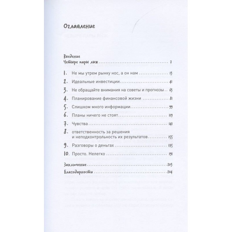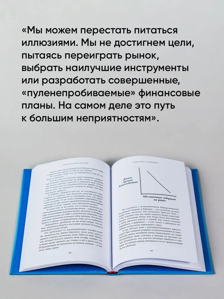 Очень полезная, ориентированная на практическое инвестирование книга. Она действительно содержит в себе набор психологических моментов/ переживаний/ ситуаций, с которыми сталкивается каждый инвестор. Читается очень легко. Я прочитал всю книгу буквально за один день (для меня это редкость). При чтении выделял важные моменты маркером. Обязательно периодически буду к ним возвращаться и перечитывать. Рекомендую данную книгу к прочтению!