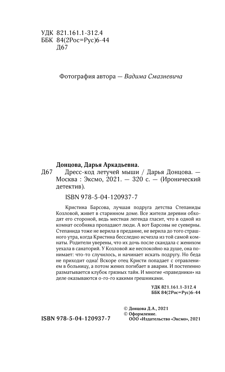 Сервис сравнения цен СкидкаГИД предлагает сравнить цены на товар «Книга: Дресс-код летучей мыши (Донцова Дарья Аркадьевна); ООО "Издательство "Эксмо", 2021»