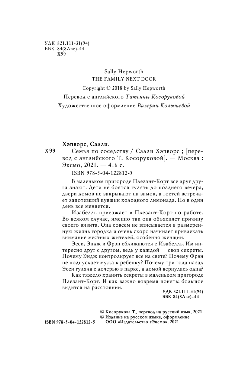 Книга: Семья по соседству (Салли Хэпворс); Эксмо, Редакция 1, 2021