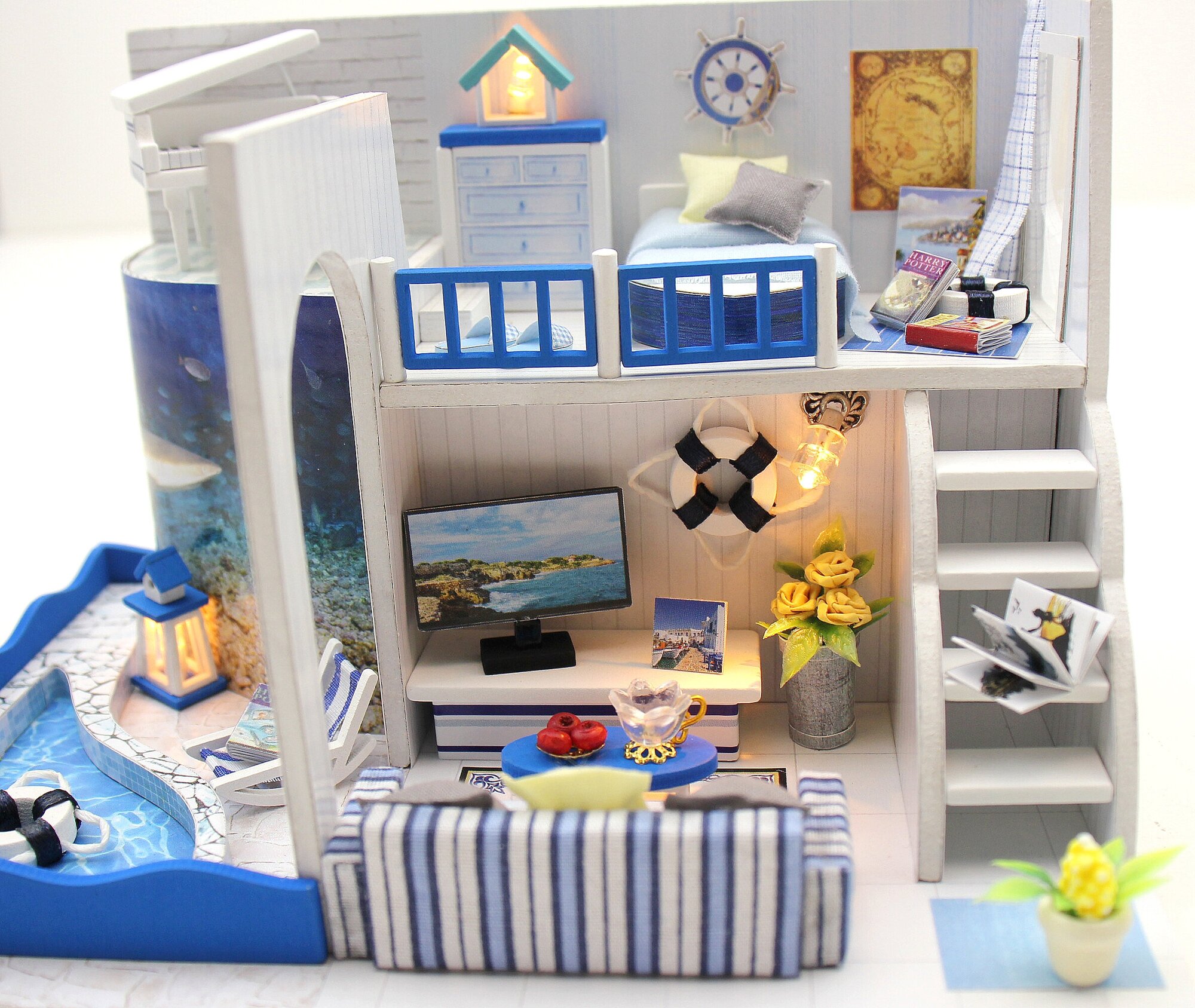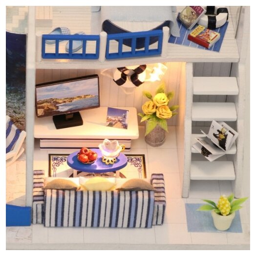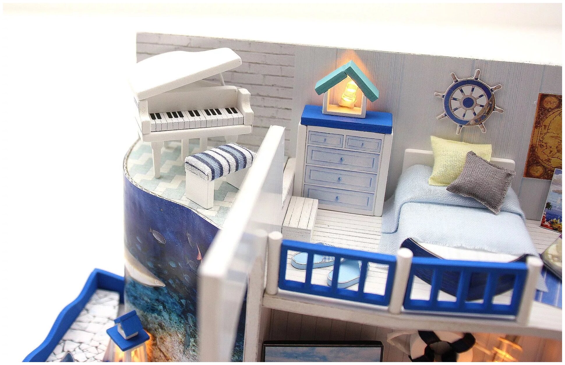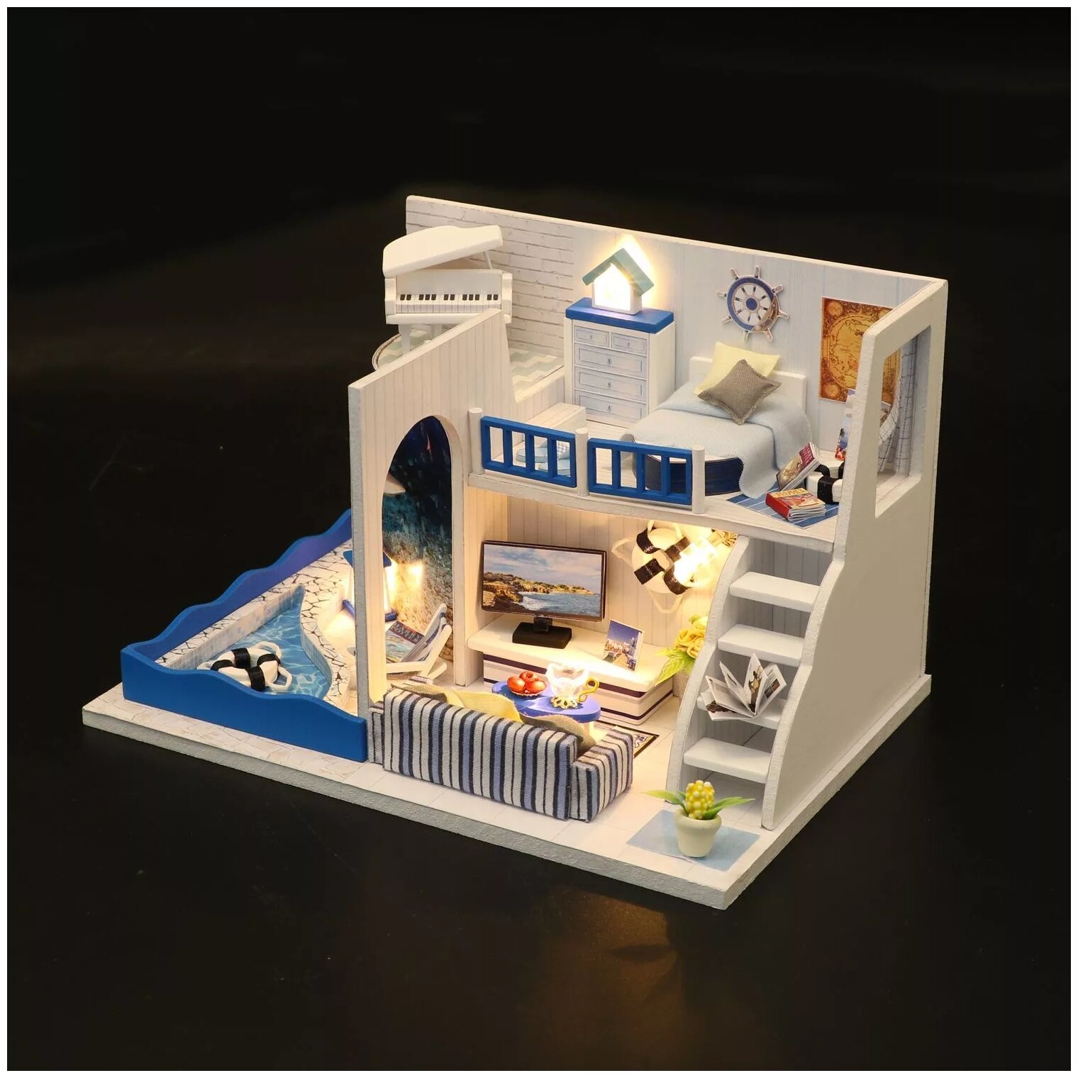 Румбокс Diy House "Морской бриз" - конструктор-миниатюра домика на побережье с небольшим бассейном и белоснежным роялем!
