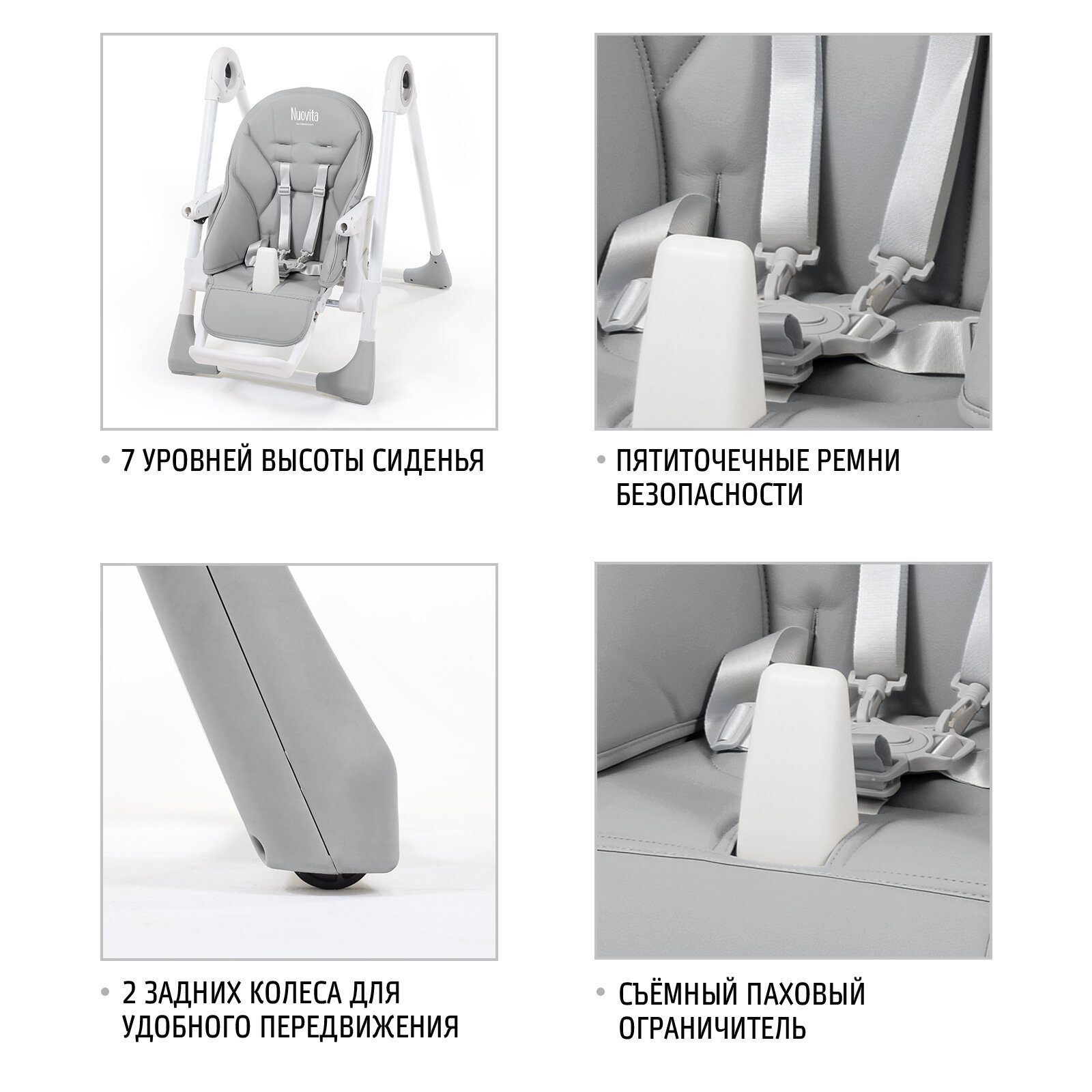 Стульчик для кормления Nuovita Lembo изготовлен с учетом потребностей малышей, отвечает запросам самых требовательных родителей, и длительное время будет радовать прекрасным внешним видом.