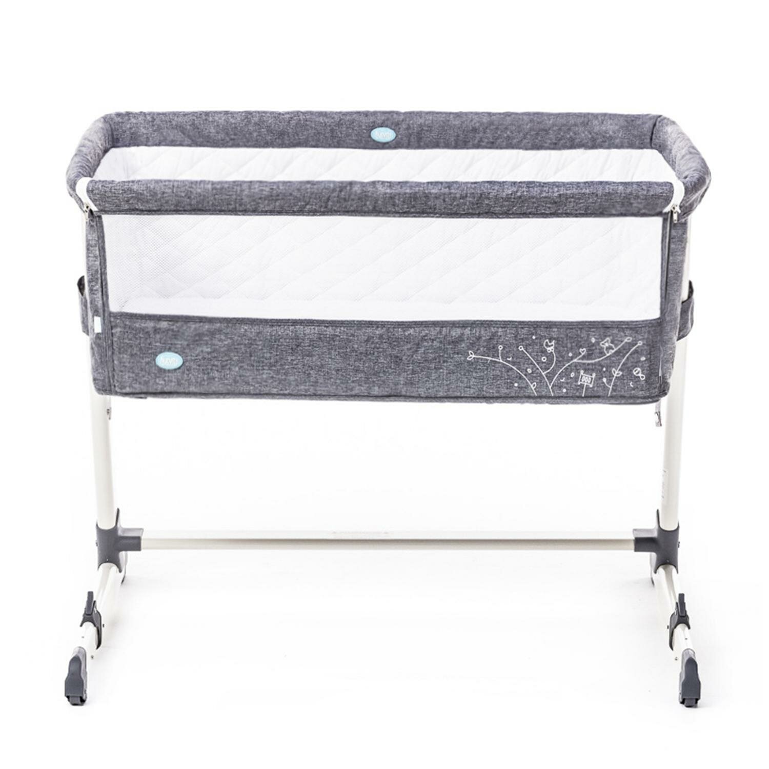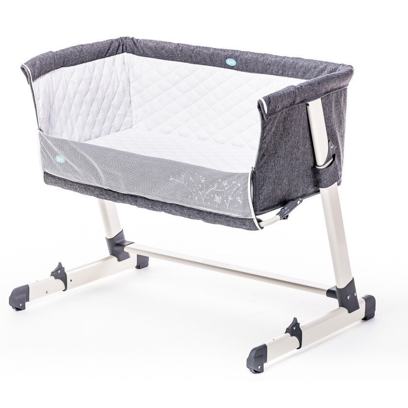Для выравнивания кроватей под один уровень у приставной кроватки предусмотрены пять различных положений по высоте. При этом передний бортик выполнен из «дышащей» сетчатой ткани, обеспечивающий циркуляцию воздуха и возможность наблюдения за ребенком.