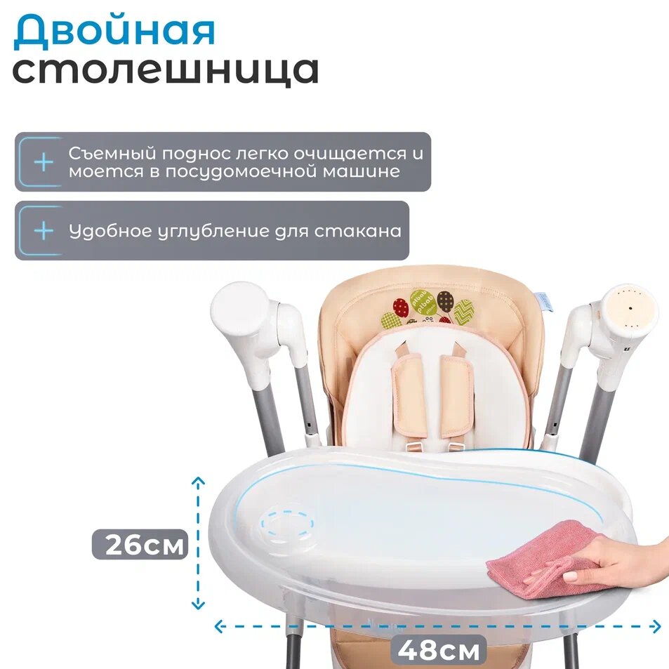 | Особенности | безопасные углы; дуга с игрушками; разделитель для ног; регулировка подножки; режим качели; съемный поднос; съемный чехол; таймер укачивания; углубление для посуды |