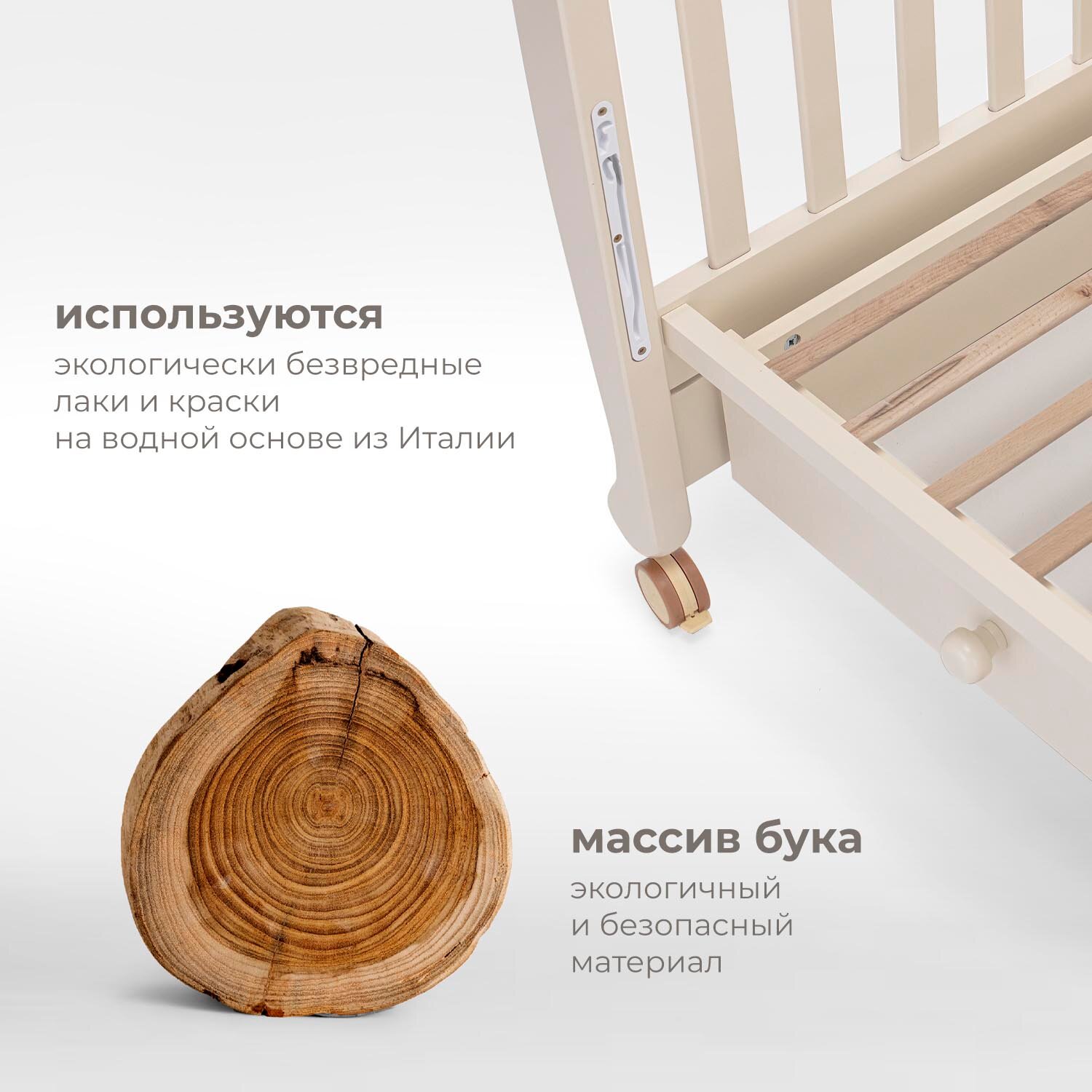 Детская кровать Nuovita Furore изготовлена из прочного, экологичного и устойчивого к деформации материала — массива бука. Лаковое покрытие, элементы декора и фурнитура соответствуют европейским стандартам безопасности.