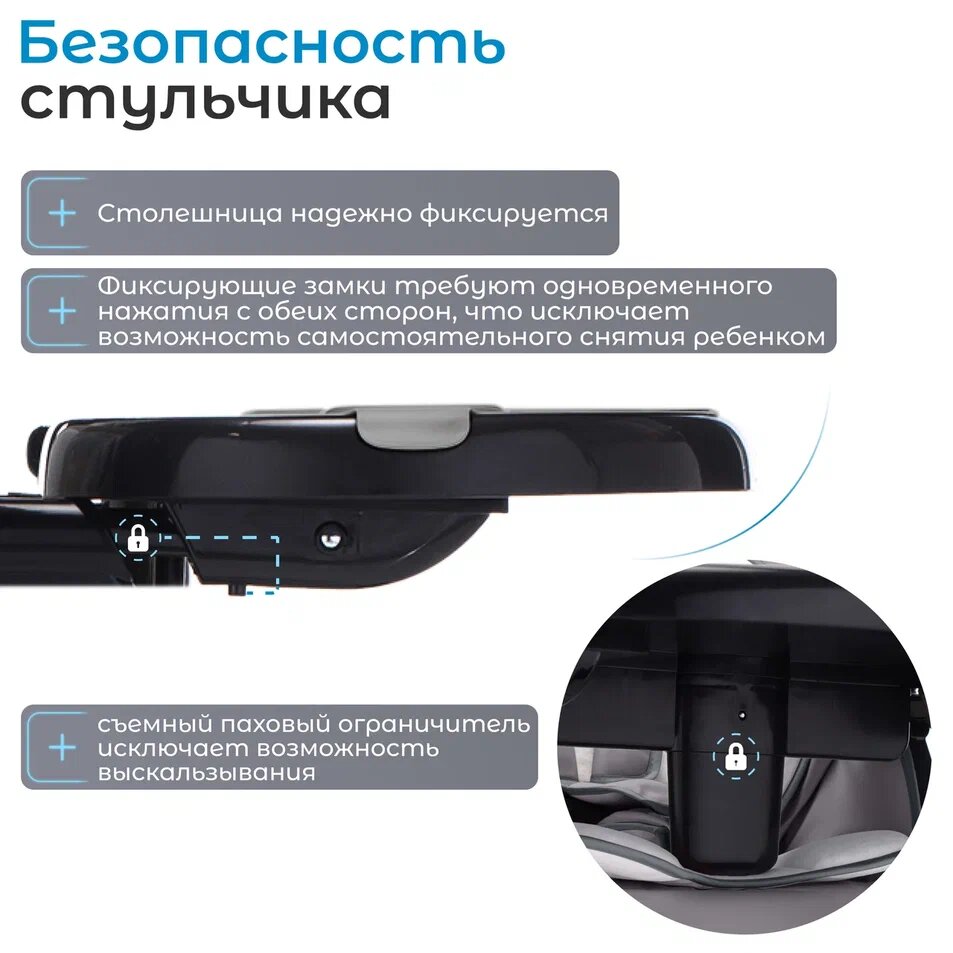 - 4 позиции регулировки спинки кресла стульчика (max 155°)