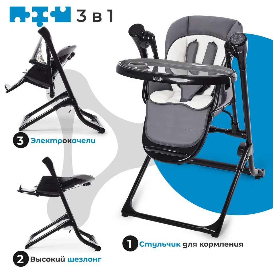 Прочный и устойчивый стульчик - трансформер Nuovita Unico Leggero будет служить качелями и полноценным стульчиком для кормления.
