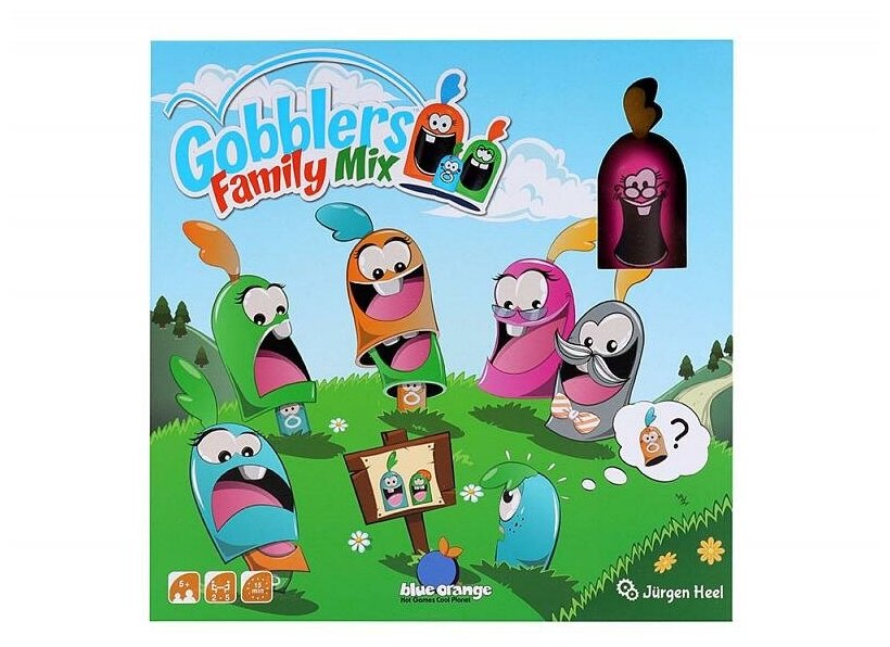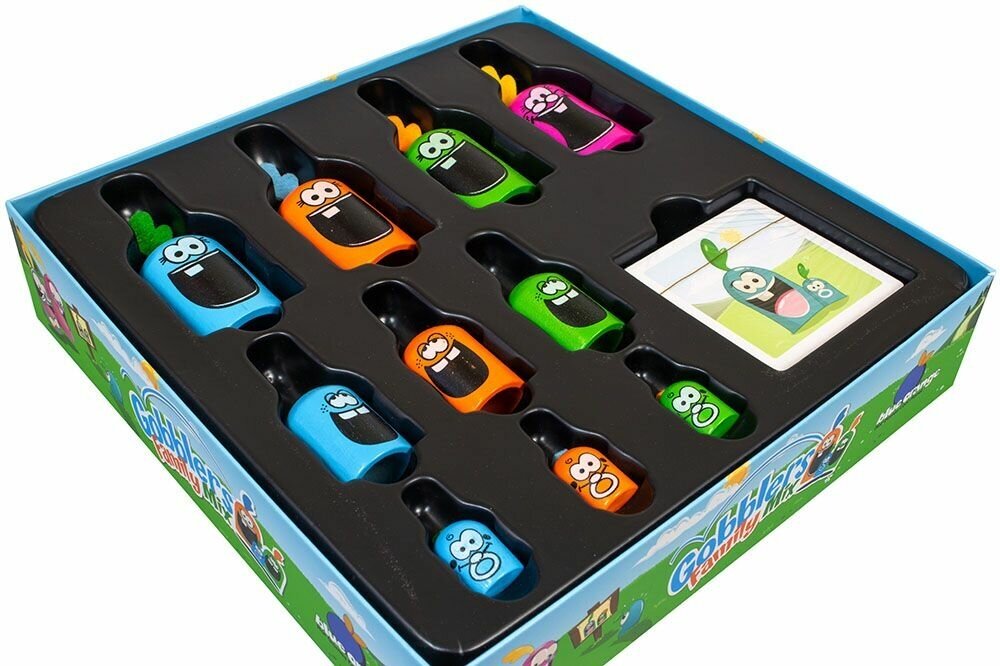 В игре 42 карты с заданиями для угадывания Гобблеров. Также есть задания, где нужно логически угадать малыша или подростка, который дополнил бы изображенных на карточке по какому-либо признаку (размер, цвет и т.д.). А ещё можно усложнить игру, пригласив двоюродных бабушку и дедушку: первая дополняет стопки Гобблеров, усложняя варианты для отгадывания, а второй то и дело выскакивает на картах с заданиями, заставляя перетасовать все стопки и начать отгадывать заново.
