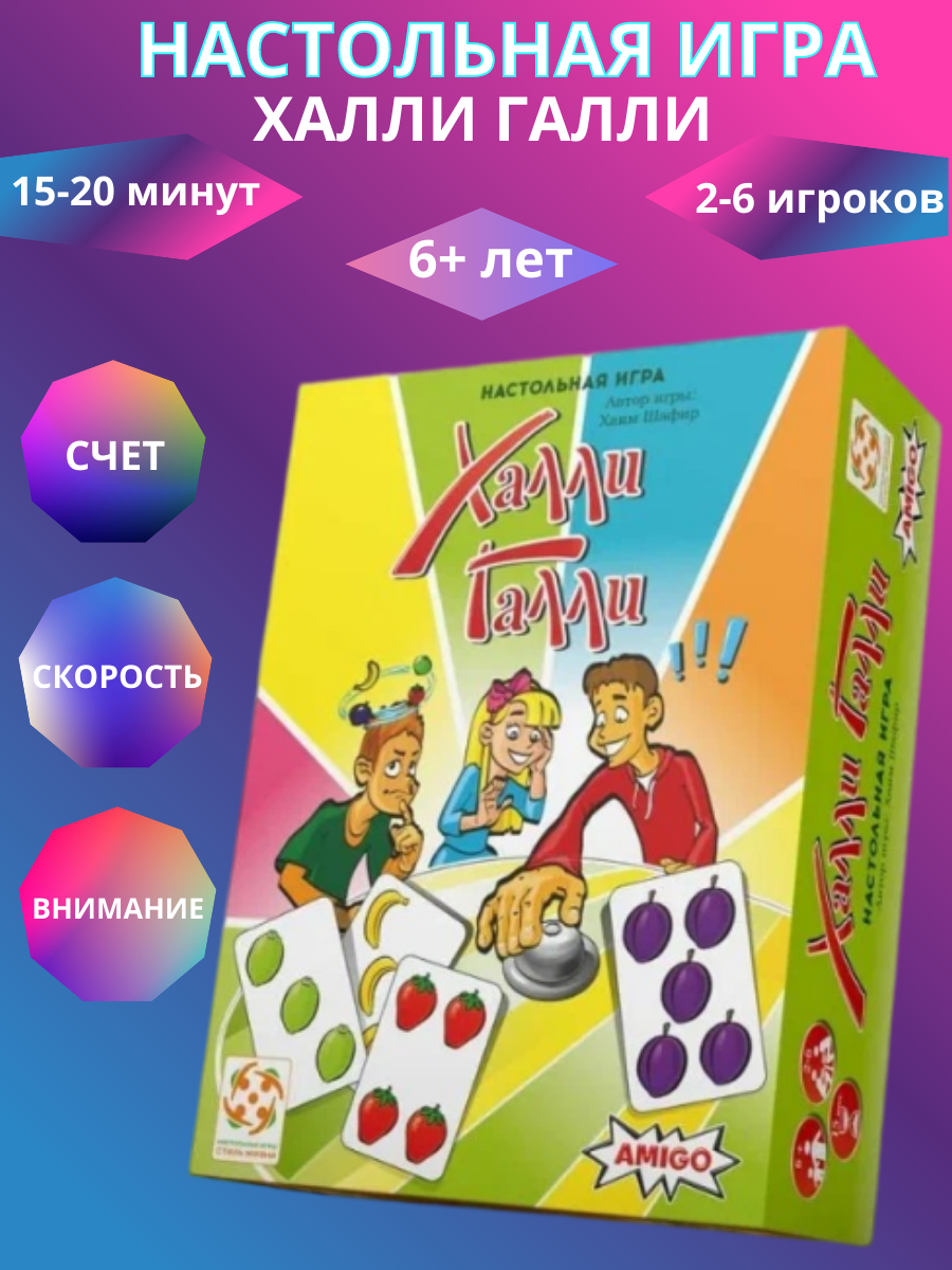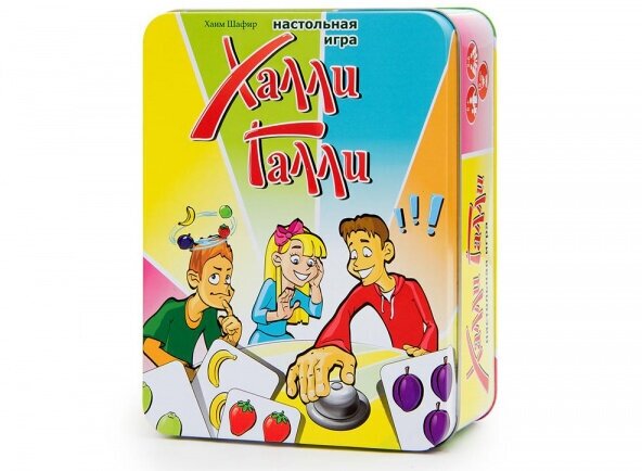 Настольная игра «Халли Галли» превосходно тренирует скорость реакции, ловкость рук, простые устные вычисления и внимательность. Игра подходит для семейного использования: играть могут как взрослые, так и дети старше 6 лет. Атмосфера веселья и азарта на весь вечер вам гарантирована! Жестяная коробка с ярким рисунком также делает игру «Халли Галли» отличной идеей для подарка.
