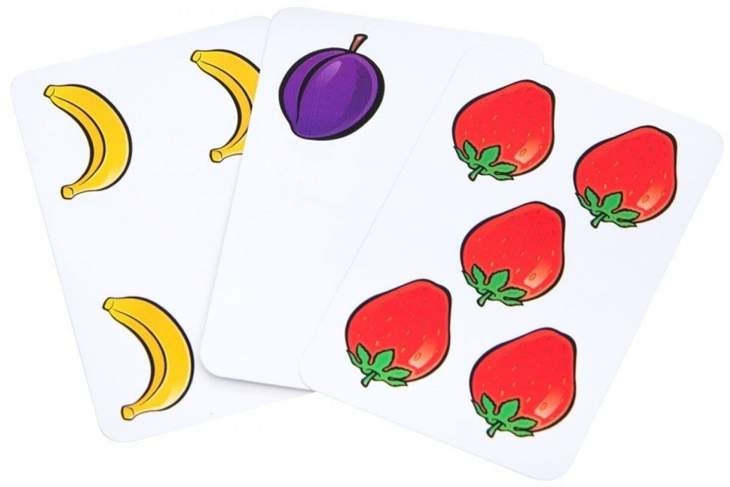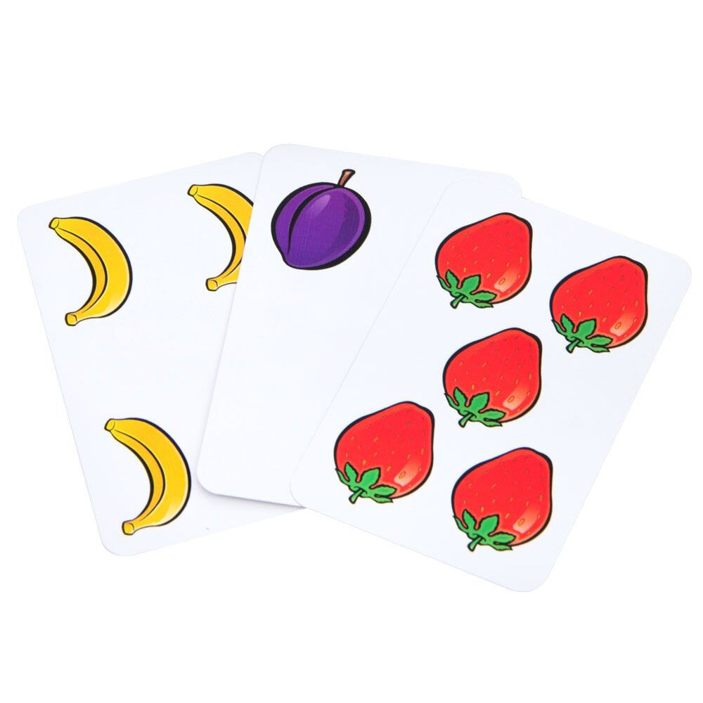 По сигналу ведущего игроки одновременно открывают свои верхние карты. Как кто-то заметил ровно 5 фруктов одного типа среди всех карт игроков, он звенит в звонок и забирает эти карты в свою колоду. К примеру, играет 4 человека. У одного из них на карточке изображено 4 сливы, у другого игрока — 1 слива, и больше ни у кого слив нет. Тогда тот, кто первым заметит эти 5 слив, звенит в звонок и получает две карточки.