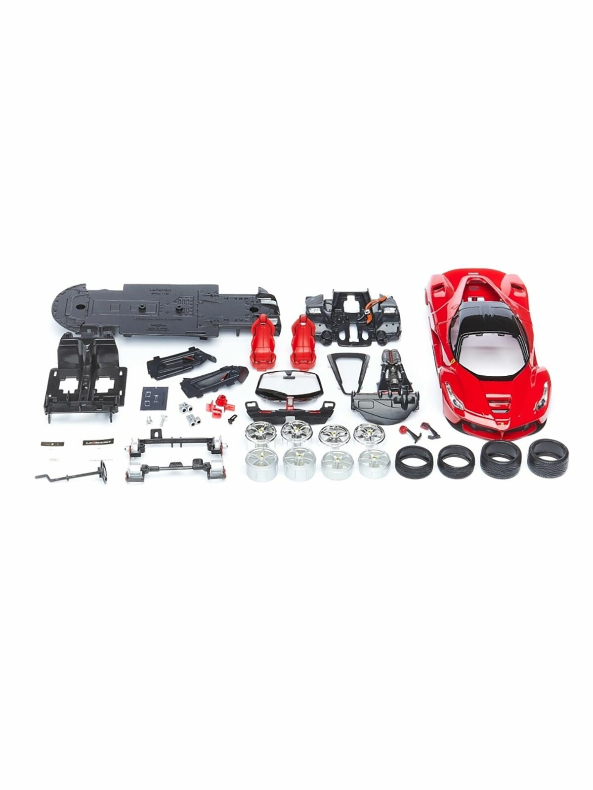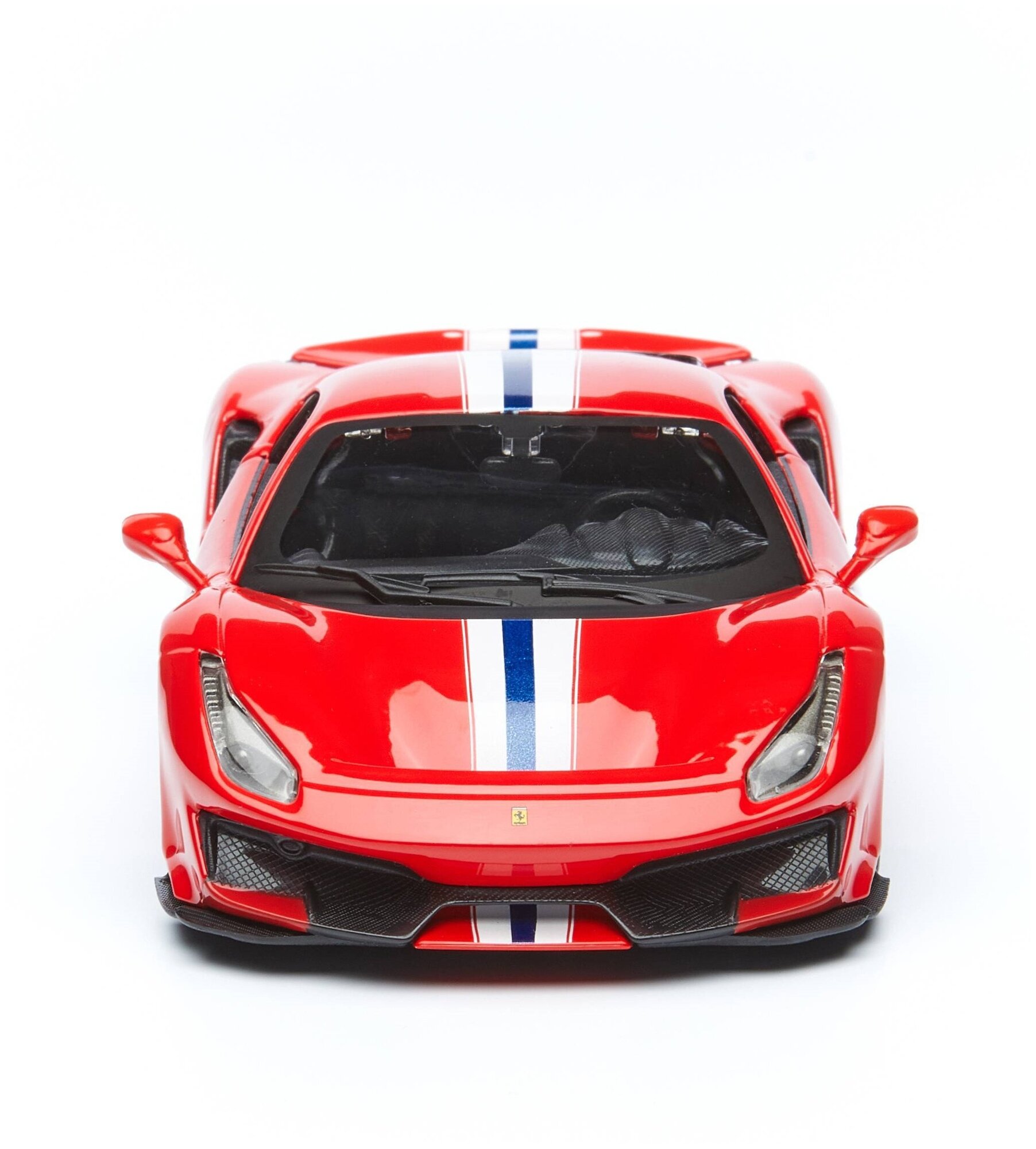 Сборная модель автомобиля Ferrari 488 Pista в масштабе 1:24 красного цвета. Сборка осуществляется методом защелкивания отдельных элементов корпуса.