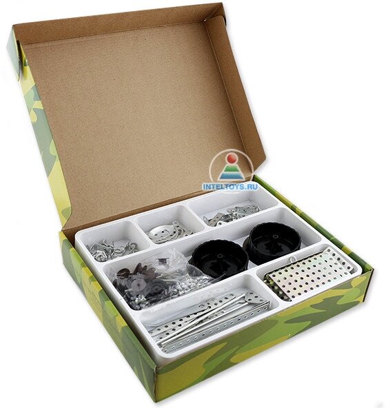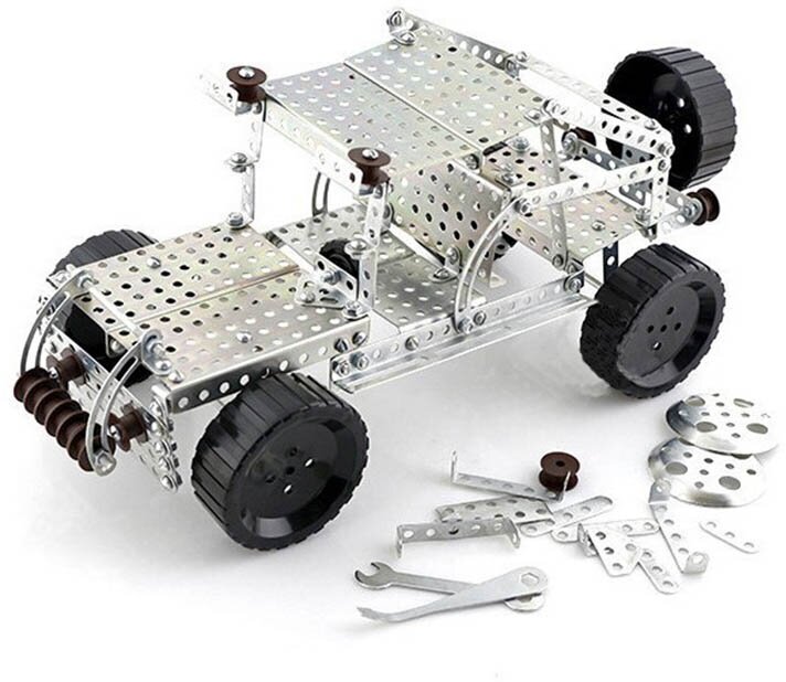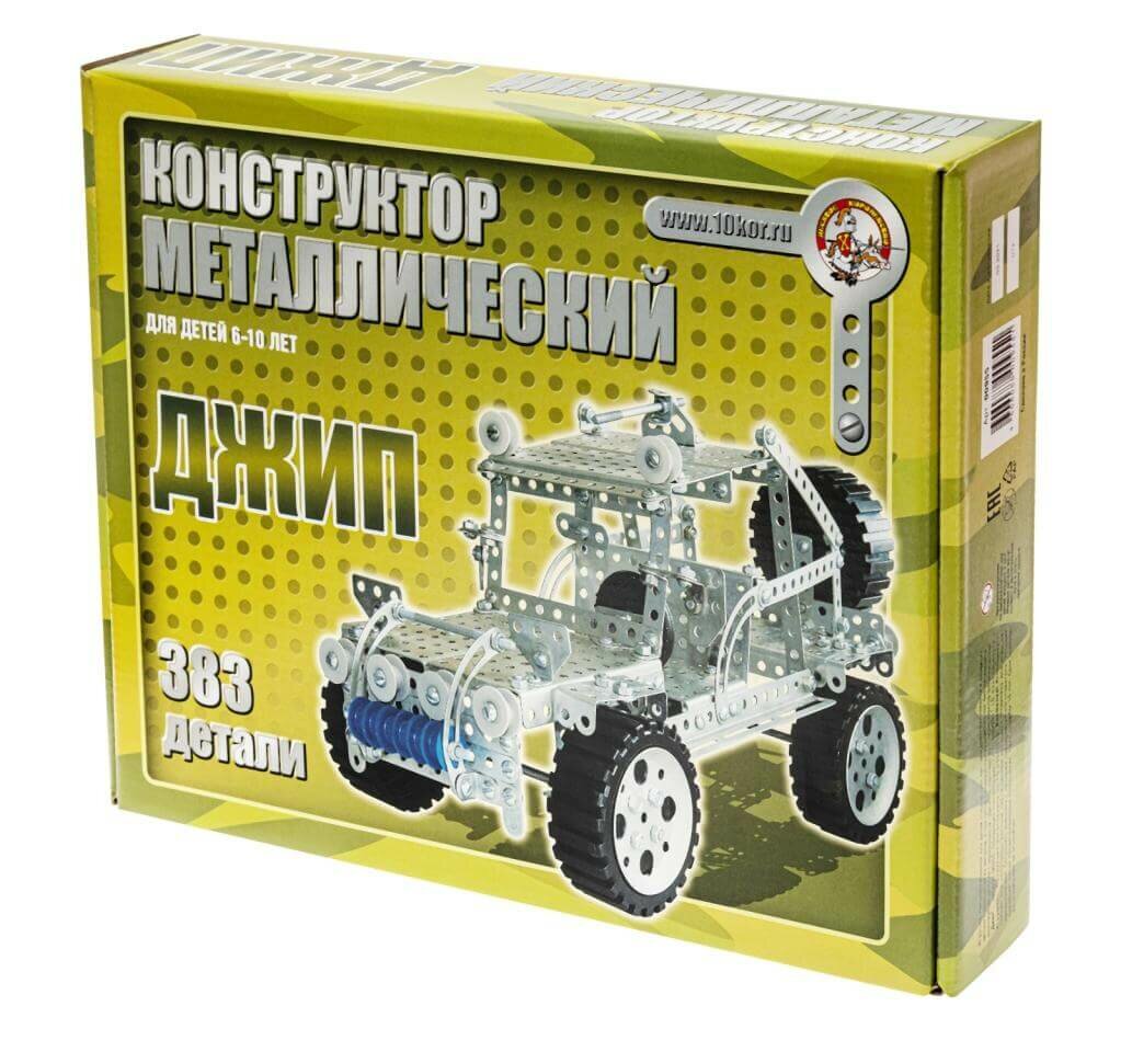 з этого набора можно создать очень реалистичную модель джипа, инструкция к сборке которого находится в комплекте, и многое другое! Количество моделей, которые можно собрать из металлического конструктора, ограничено фантазией ребенка.