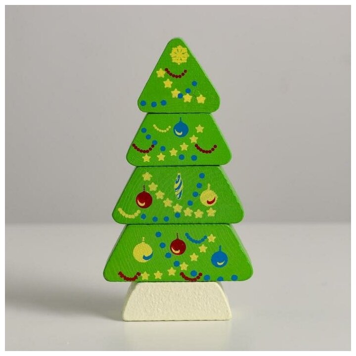 Пирамидка безосевая "Елочка" прекрасная игрушка для развития мелкой моторики, пространственного восприятия и умения собирать детали в единое целое. Ребенку, используя элементы пирамидки, необходимо собрать елочку. Это можно делать как в горизонтальной плоскости, так и в вертикальной. Детали яркие, крупные, хорошо обработаны и прокрашены, что исключает возможность малышу пораниться.