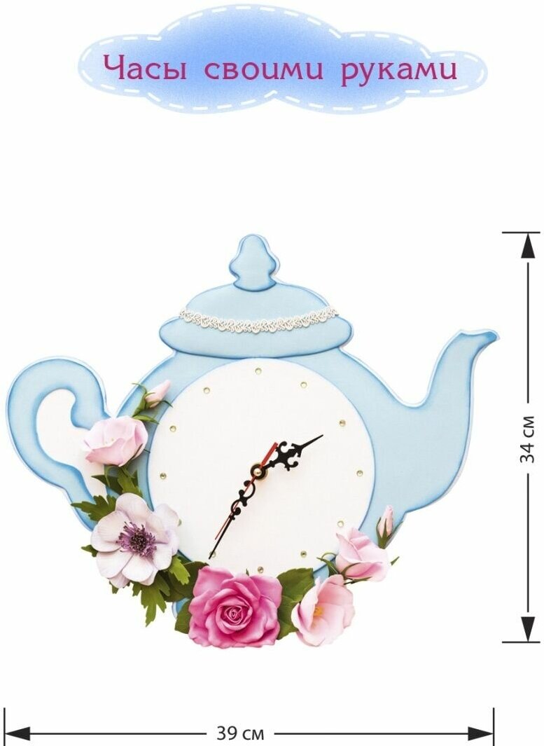 | Состав набора | основа для часов, часовой механизм, комплект стрелок, FOM EVA (фоамиран) разных цветов, готовые детали-заготовки для часов на самоклеющейся основе и без, пастель, губка, зубочистки, клей, выкройка, дополнительные элементы декора |