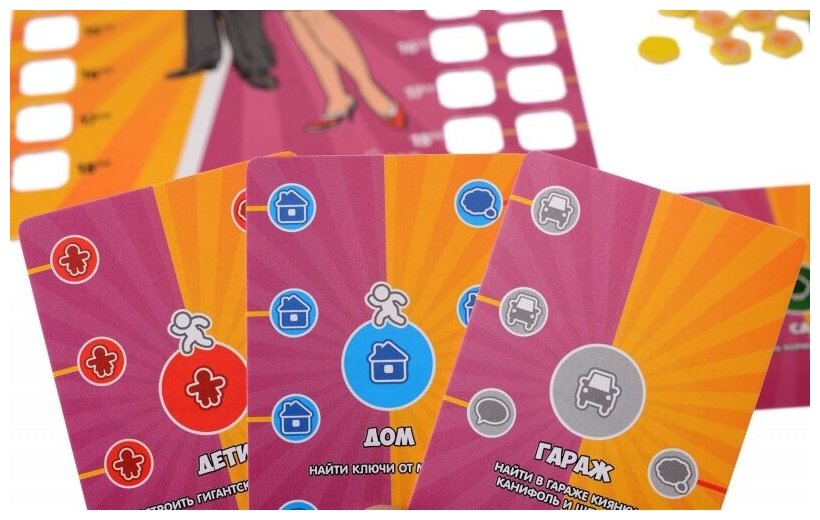 Каждую карту модно сыграть разными сторонами: мужу или жене. Сделал дело — получи удовольствие. Или сразу два — за любимые дела ваших персонажей.