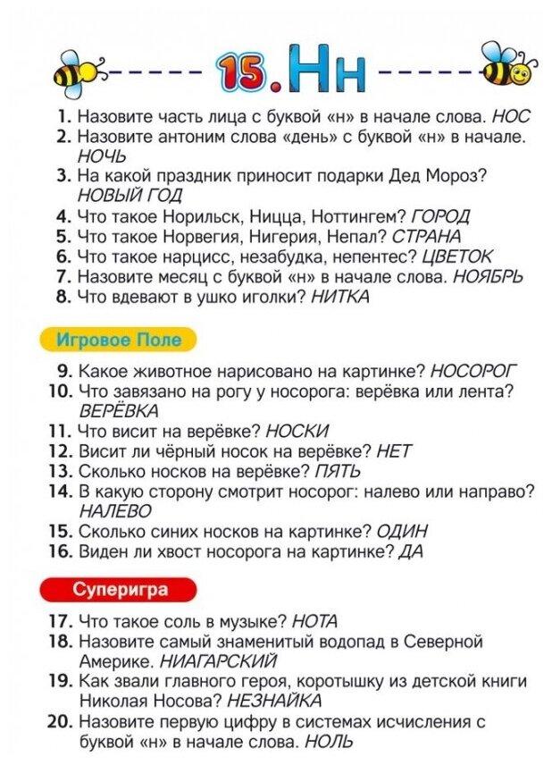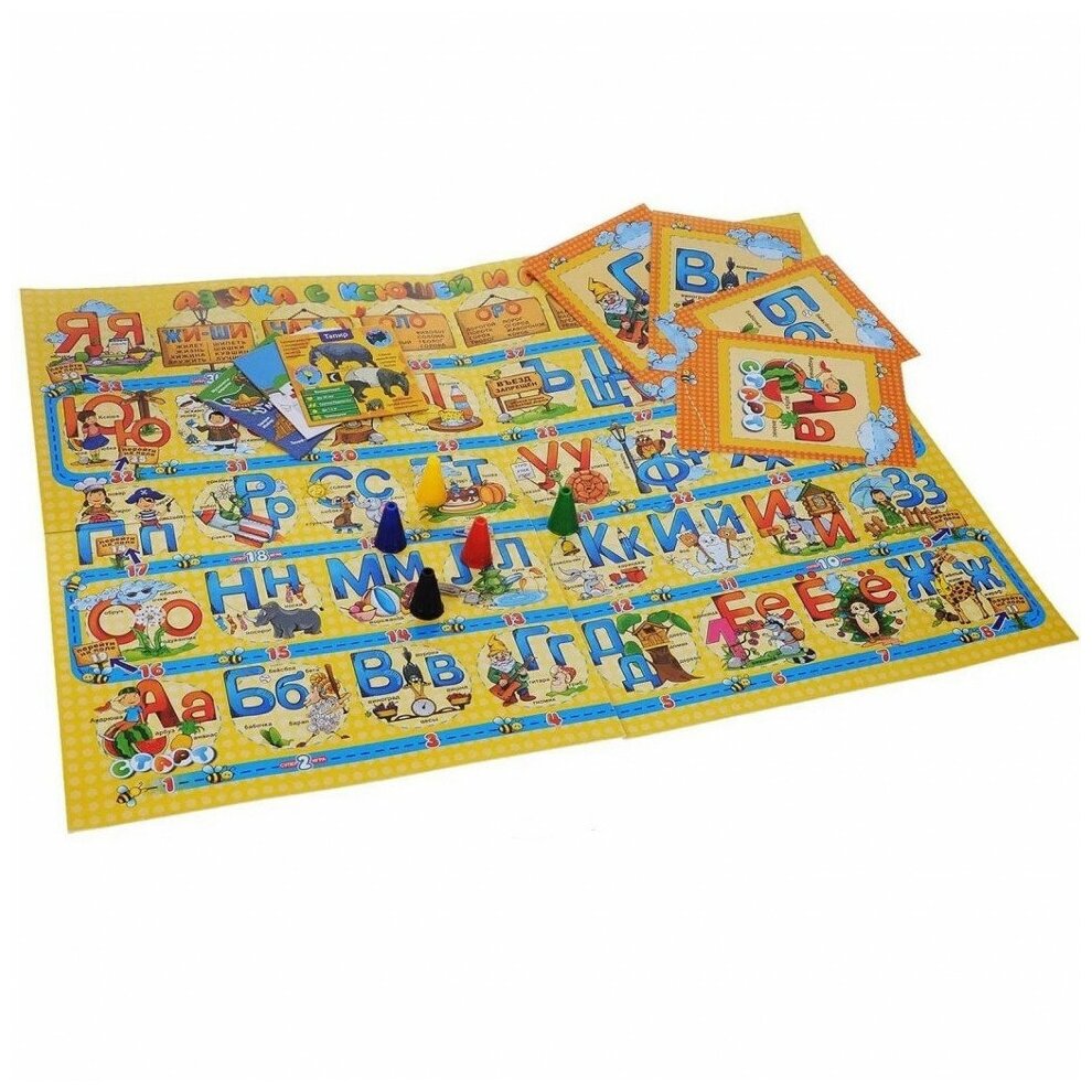 Пройдите своей фишкой первым от Старта до Финиша по игровой дорожке с 40 картинками Азбуки, правильно отвечая по очереди на вопросы карточек. Чтобы выиграть, очень важно развить хорошую зрительной памятью, ведь много ответов расположено на соответствующих картинках игрового поля и на фасадах вопросников.