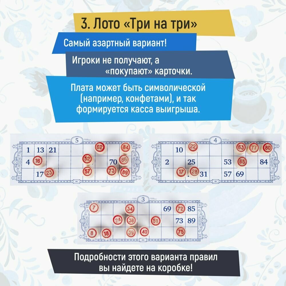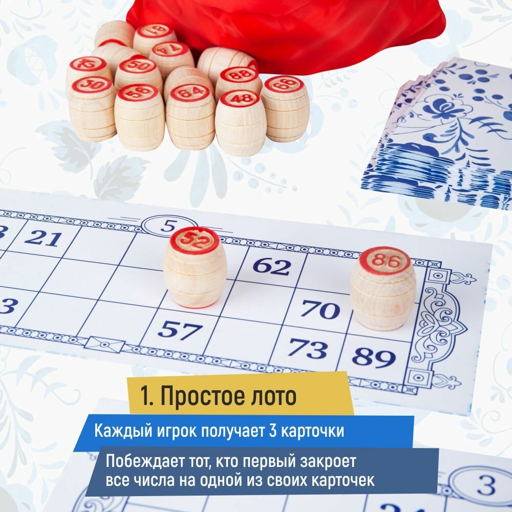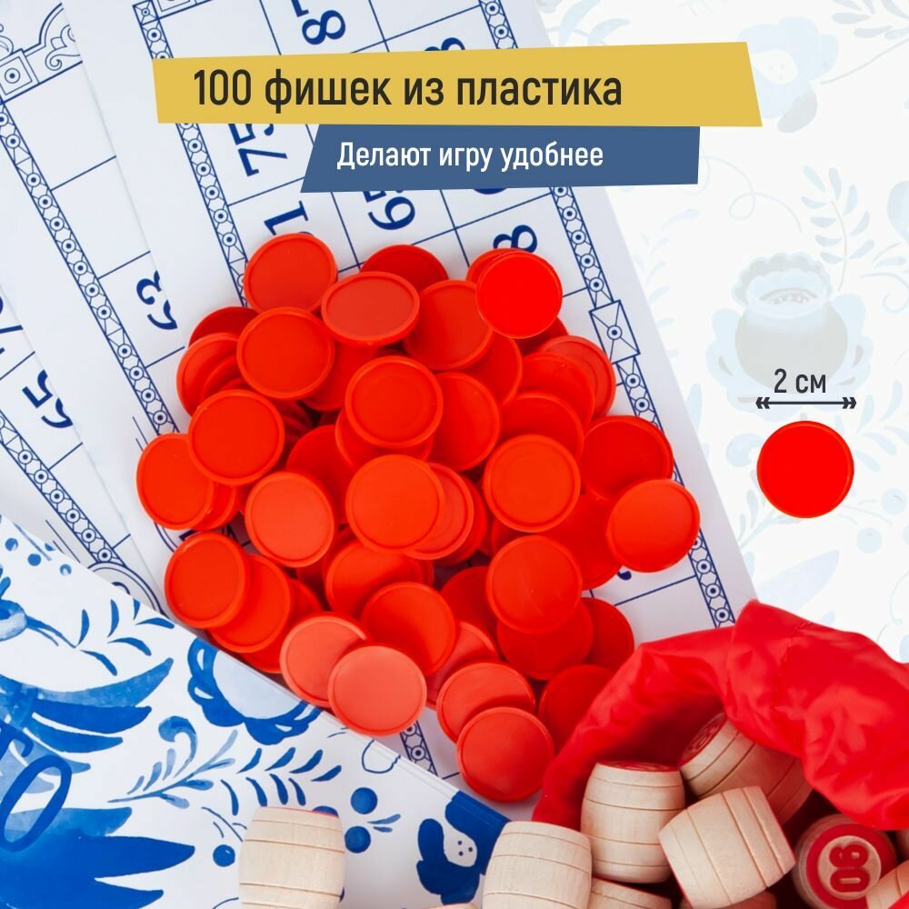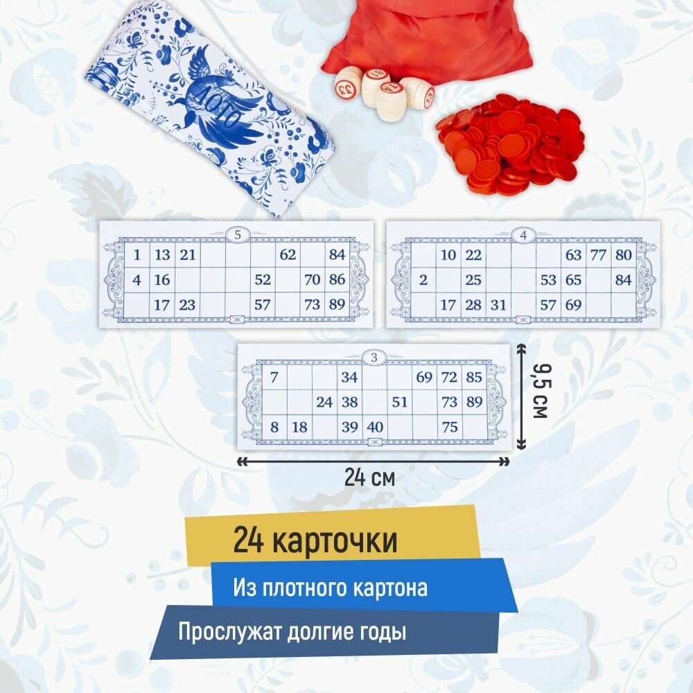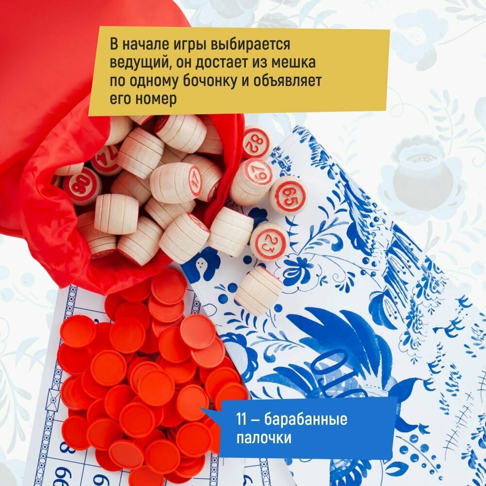| Комплектация | 90 деревянных бочонков в мешке, 24 карточки, 100 жетонов-закрывашек |