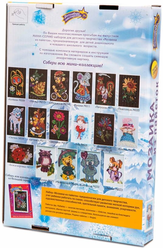 Мозаика из пайеток — новое, позитивное занятие для проведения семейного досуга. Ваш ребенок самостоятельно или вместе с вами соберет прекрасную картину, которая станет великолепным подарком близким и друзьям или стильным интерьерным украшением.