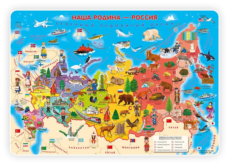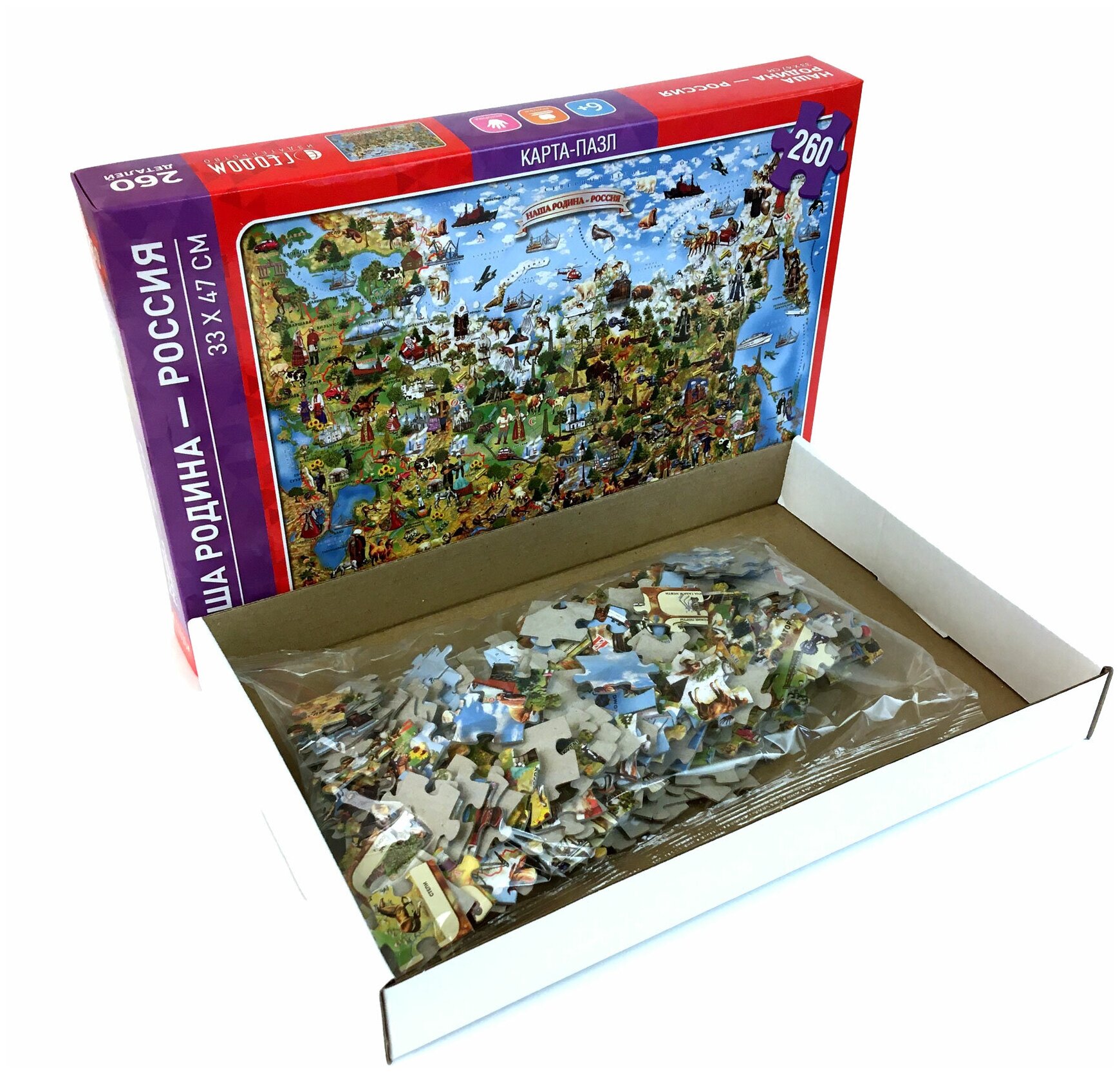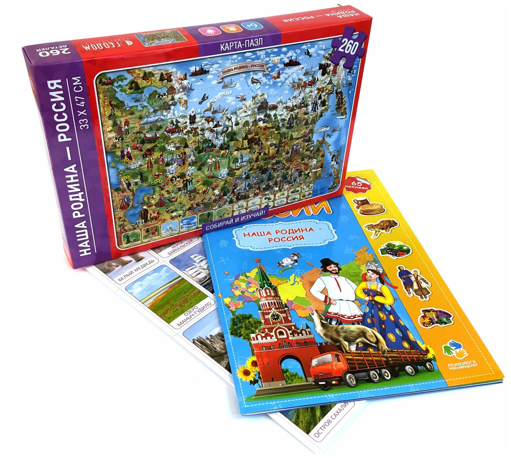 Карта-пазл «Наша родина Россия» — настоящий путеводитель по России для детей, выполняющий важную задачу знакомства с родной страной, ее культурой и традициями, народами, достопримечательностями. В собранном виде будет служить прекрасным дополнительным материалом для познания окружающего мира и географии. Пазл красочный и интересный, с большим количеством иллюстраций.