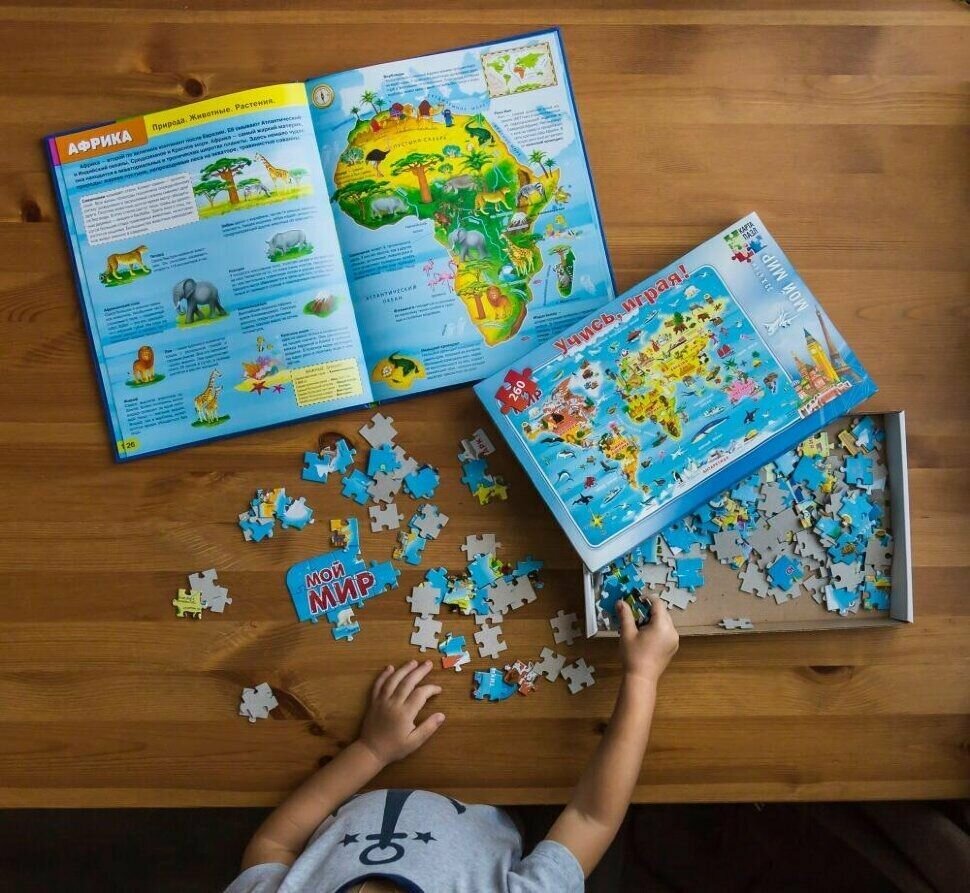 Работа с таким пазлом поможет ребенку потренировать усидчивость и узнать много нового о планете Земля.