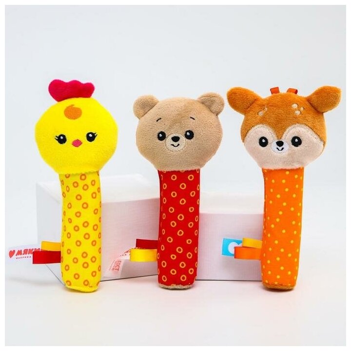 С первых месяцев жизни малыша погремушка-пищалка от «Мякишей» станет прекрасной развивающей игрушкой вашего ребенка.
